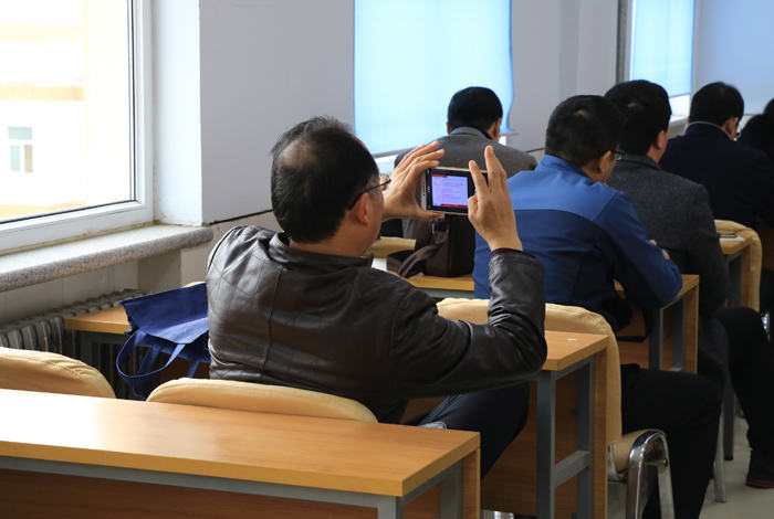在前往多媒体教室的途中,大家兴致勃勃的参观了校园,深为我校浓郁的校园文化和宏大的办学规模所感染,纷纷驻足观看,时不时拿起手中的相机、手机进行拍照。