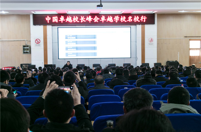 中国卓越校长峰会创始人兼组委会主席陈绍军主席向大家讲解此次名校行活动的项目,一由周校长为全体教育同仁作报告,二是由级部主任田旺向大家讲解我校实验班以及文科班的尖子生管理策略。报告厅内人头攒动,座无虚席。