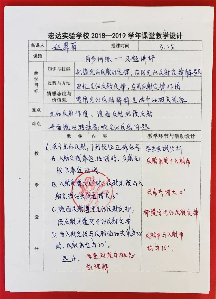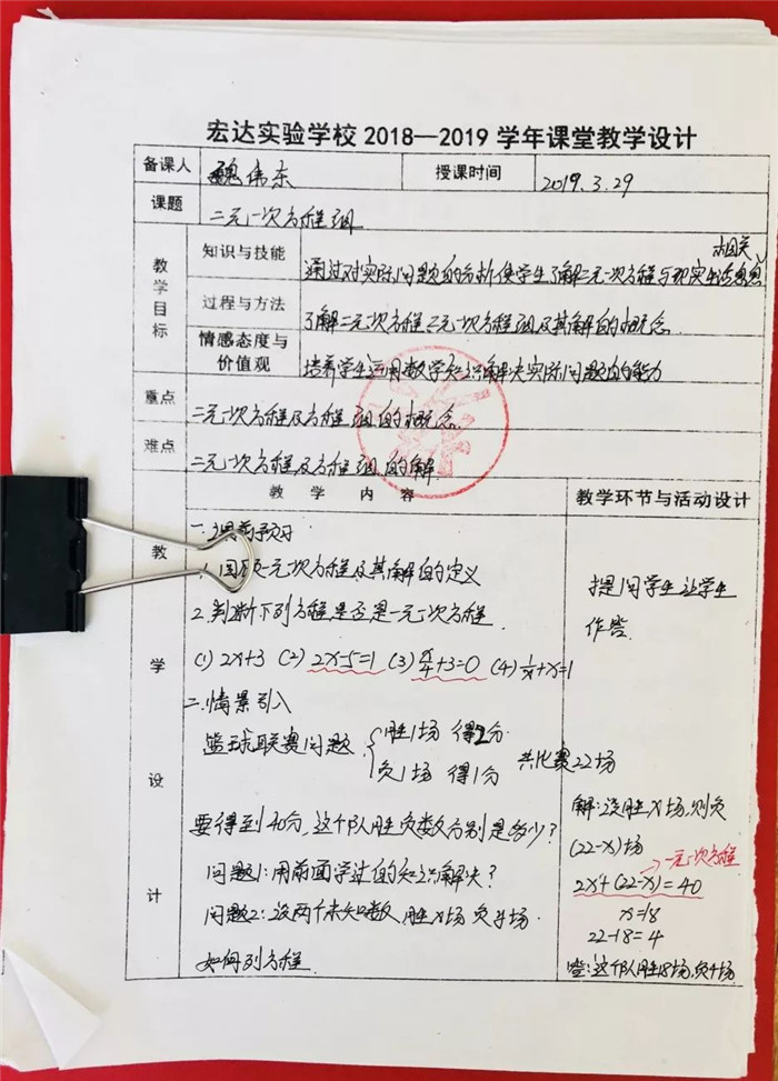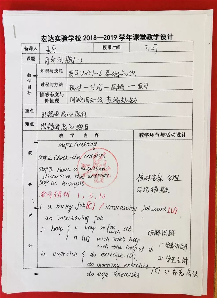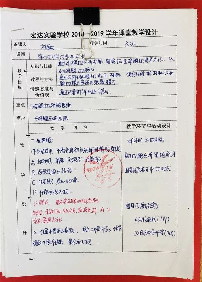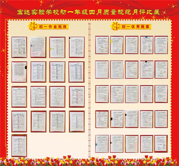 暖春四月,惠风和畅。宏达实验学校初一年级组织全校教师优秀教案、优秀作业批改评比活动。优秀老师的教案思路清晰、图文并茂、反思详实、适应性强。学生作业批改字迹工整、批改到位、内容适量。值得我校教师认真学习。