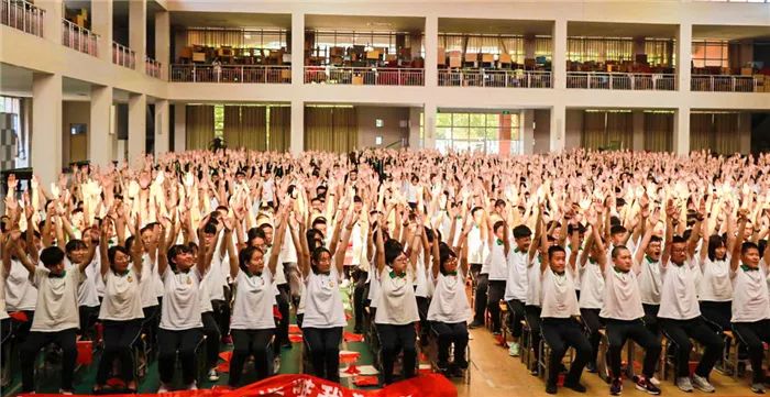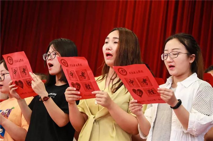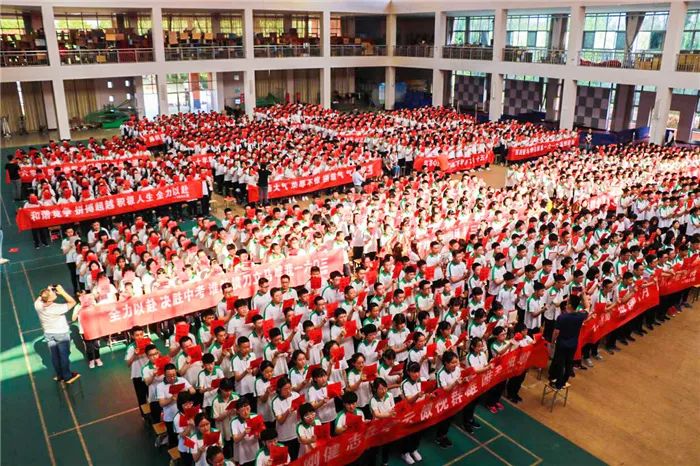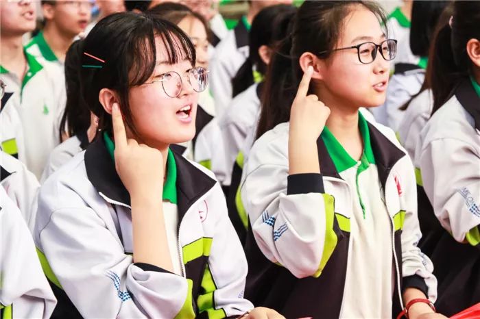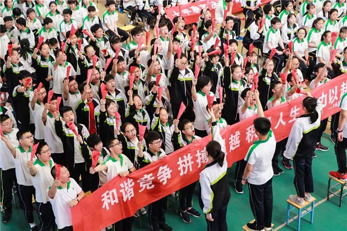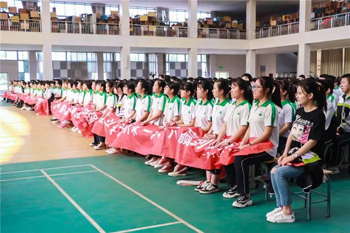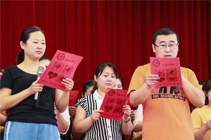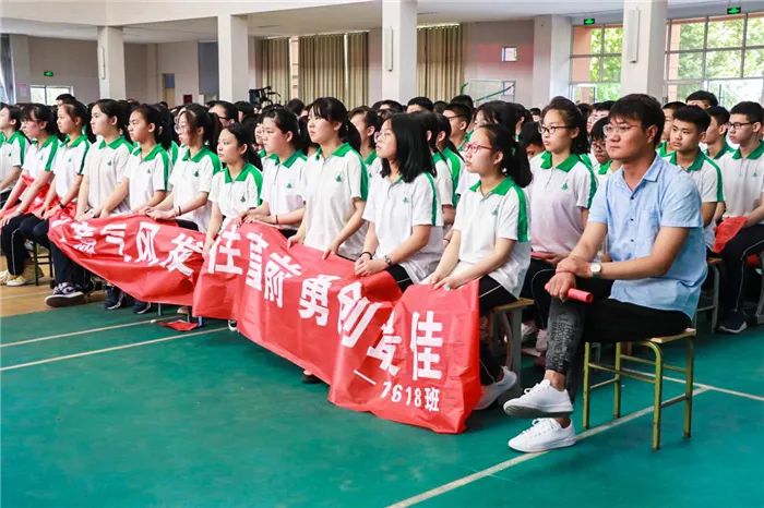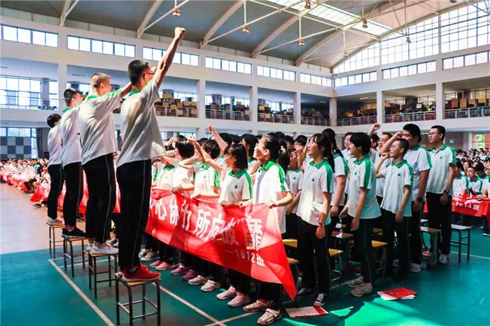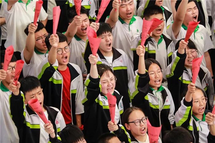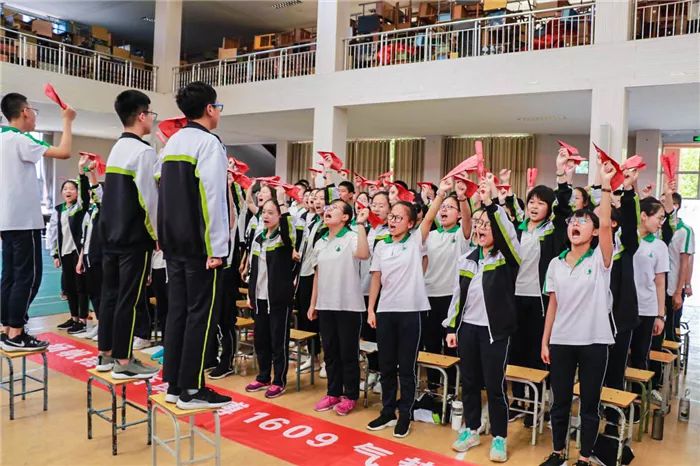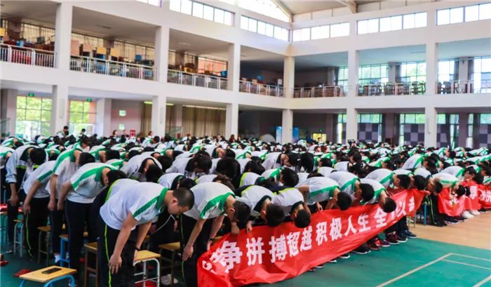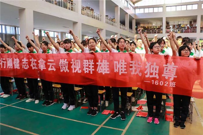 到场的学生家长上台为孩子们加油鼓劲,共同喊出“状态就是学习力,学习力就是分数 ”的口号,各班班主任也用一句话喊出对孩子的爱和希望。