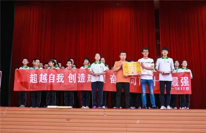 李老师演讲中通过“班级士气大比拼”这一环节,鼓舞学生的士气,其中17班、8班获得了冠军,1班和12班获得了亚军。