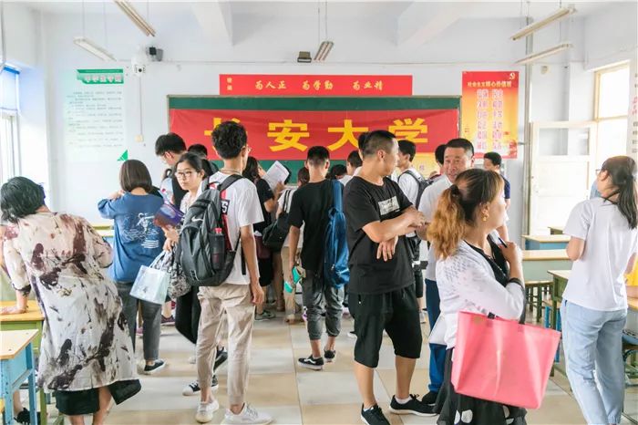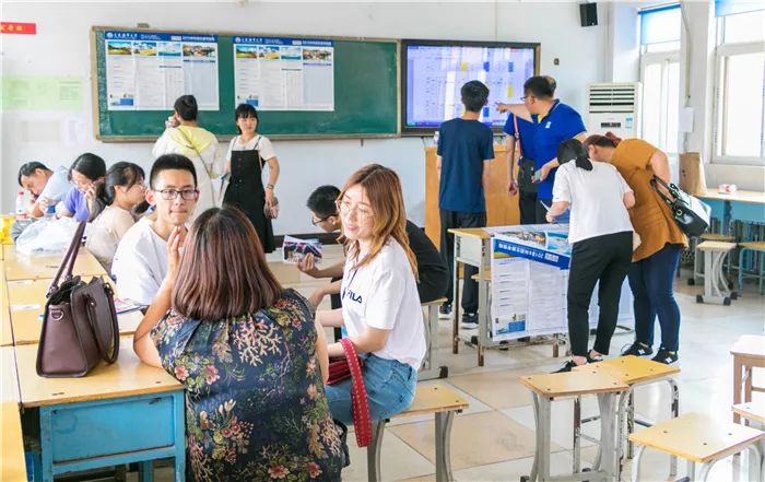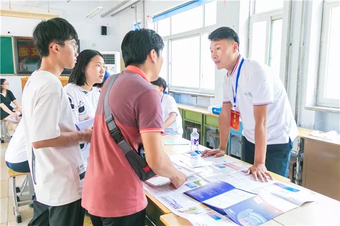 得益于我校学生的高素质、优秀成绩,此次高招会共有60余所高校参加,包括中国人民大学、南开大学、天津大学、西安交通大学、哈尔滨工业大学、吉林大学、四川大学、中南大学、北京交通大学等众多一流院校。下午2时未到,各高校的招生负责人便已来到我校教室的指定地点,为早已等待在教室门口的学生和家长进行答疑解惑。