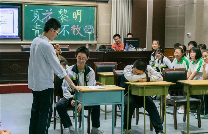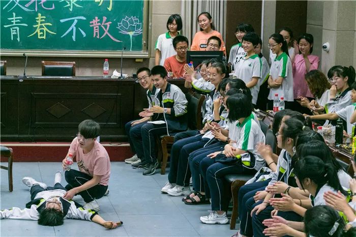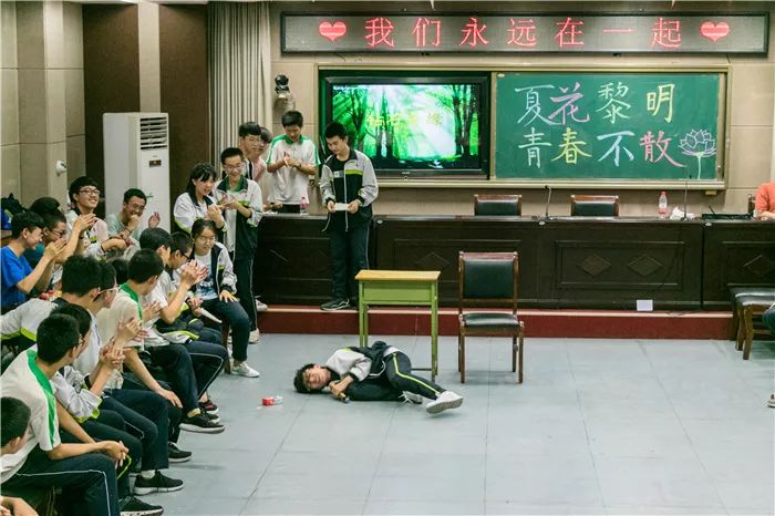 学生们自编自演的小品《师生》,真实地再现了初中三年老师与学生之间的相处,诙谐中透漏着浓浓地回忆,学生们观看地兴高采烈。