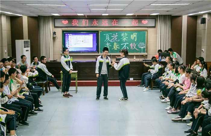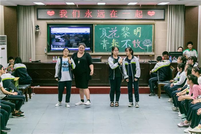 随后,班主任们为学生带来朗诵《老班们的爱》,并送上了毕业祝福,激励同学们要永怀理想,坚持初心,走出人生的高度,面对更广阔的天空。同学们也献唱自己改编的歌曲《青茫》,借此表达对老师教授自己知识与经验、陪伴自己成长的感恩之情以及对初中美好三年的留恋之情。
