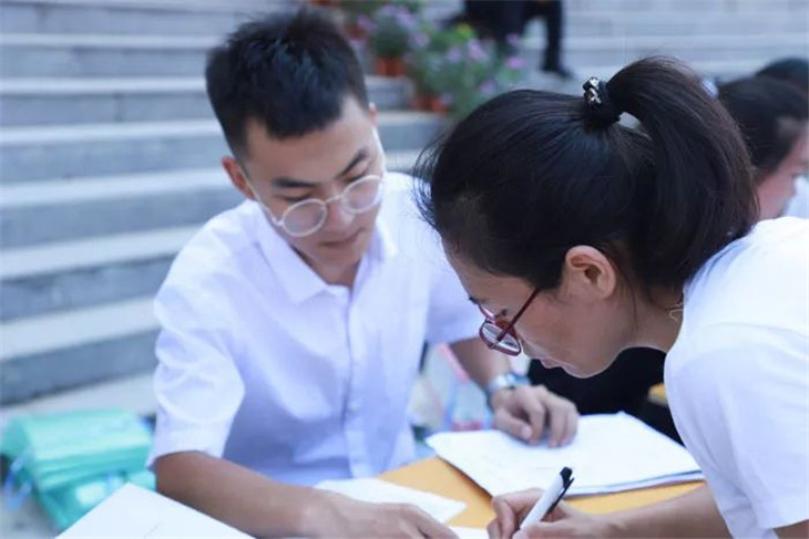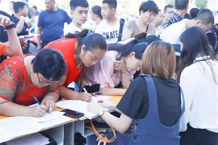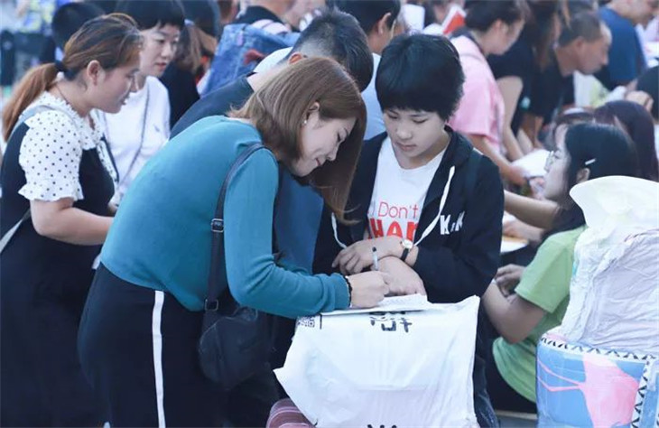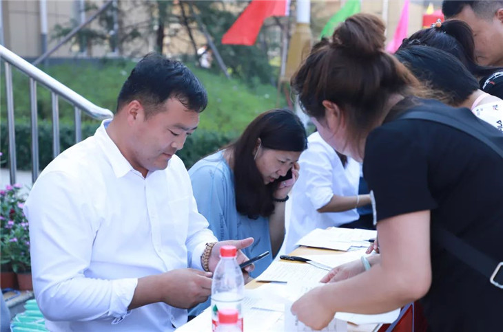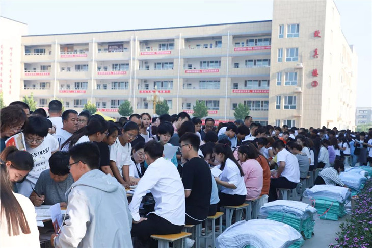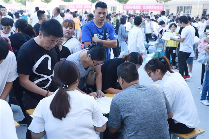 班级接待处的老师们耐心地为新生答疑解惑、办理报到手续。忙碌而热情的老师们给学生和家长带来了一股股暖流,如春天的细雨沁润心田!