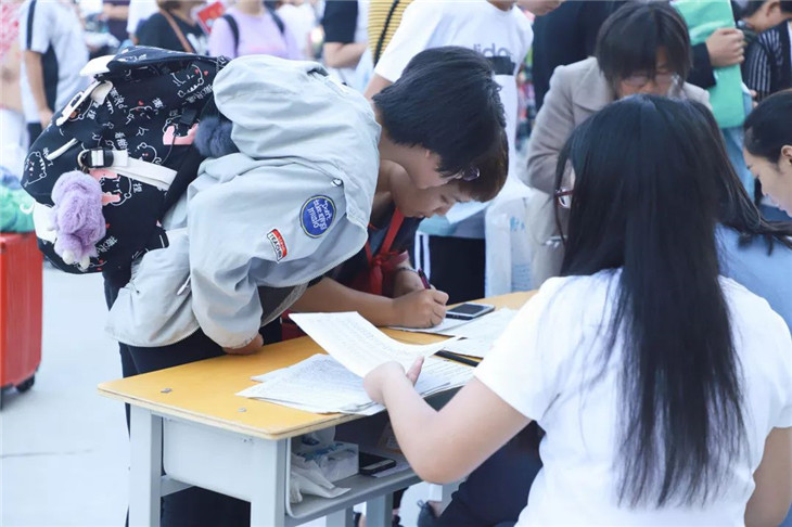 负责接待的老师和学长、学姐们的身影分布在校园的各个角落,时刻留心学生入学状态,关注他们的需求,及时送上温暖的鼓励和关怀。