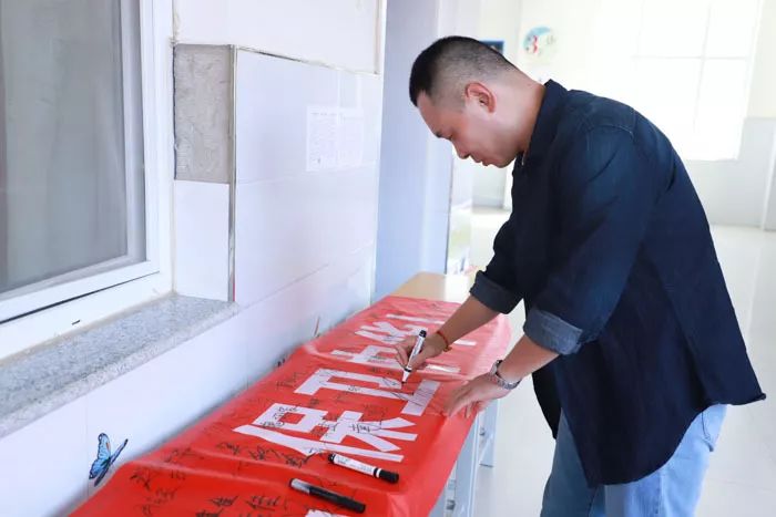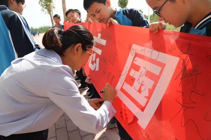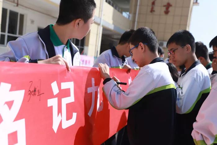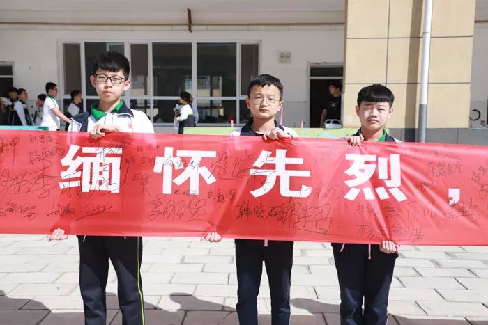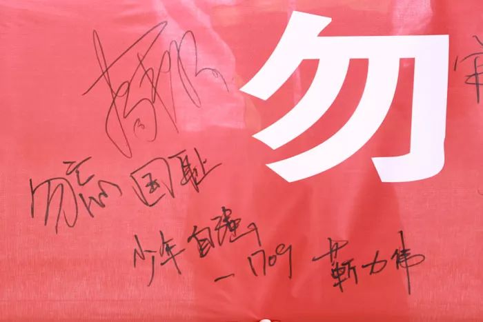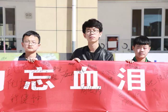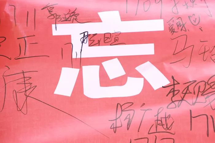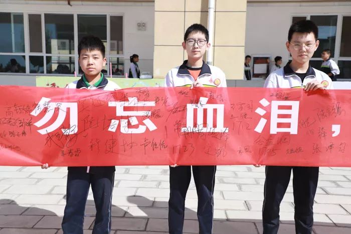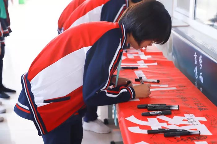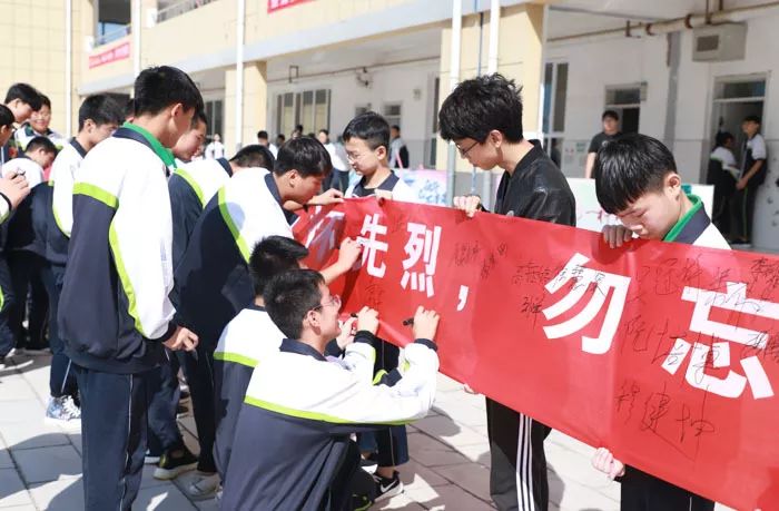 签名现场,伴随着铿锵有力的宣誓,老师和同学们纷纷拿起手中的笔,郑重而庄严地奋力写下自己的名字,表达了他们对祖国、对和平无比热爱的拳拳赤子之心,同时也表达了勿忘国耻与振兴中华的爱国情怀。