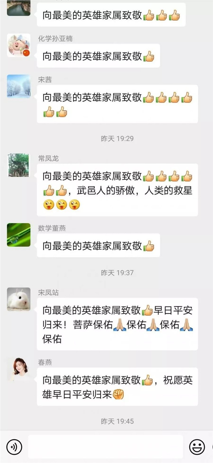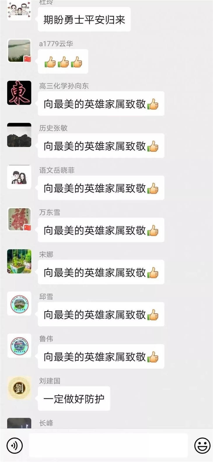 我校教师卢胜峰的妻子赵志伟护士长是冲到疫情防控前线的一员。卢老师表示,作为家属,能做到的就是全力支持,解除前线战士的后顾之忧,为祖国贡献一份力量!