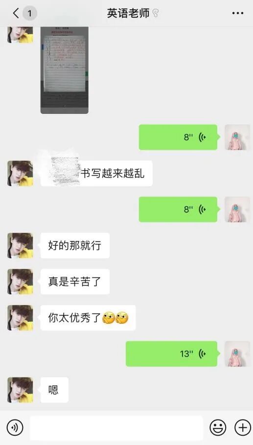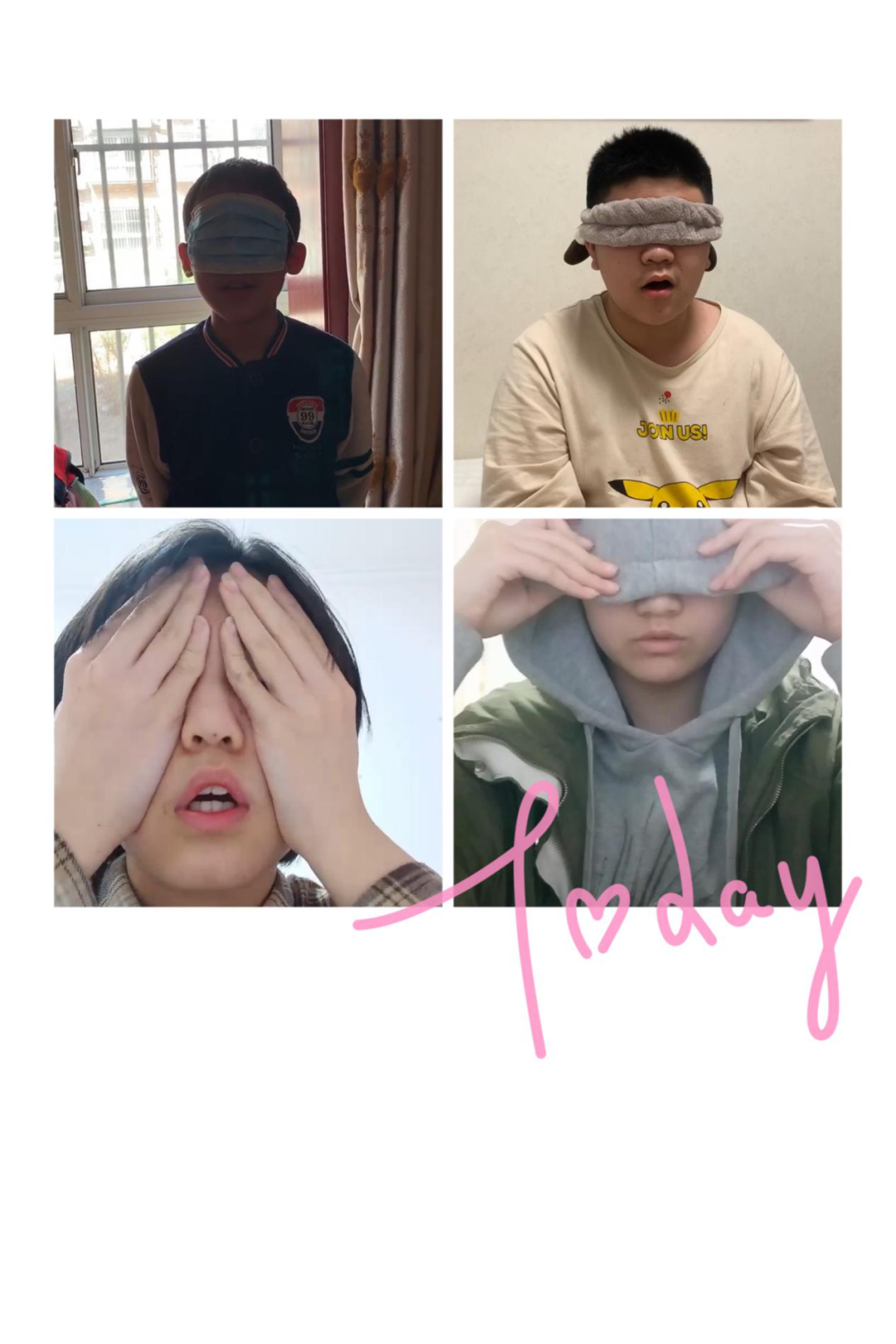 组长们检查组员背诵情况是更是别出心裁,同学们将蒙住眼睛背诵的视频发给组长,以便组长检查。