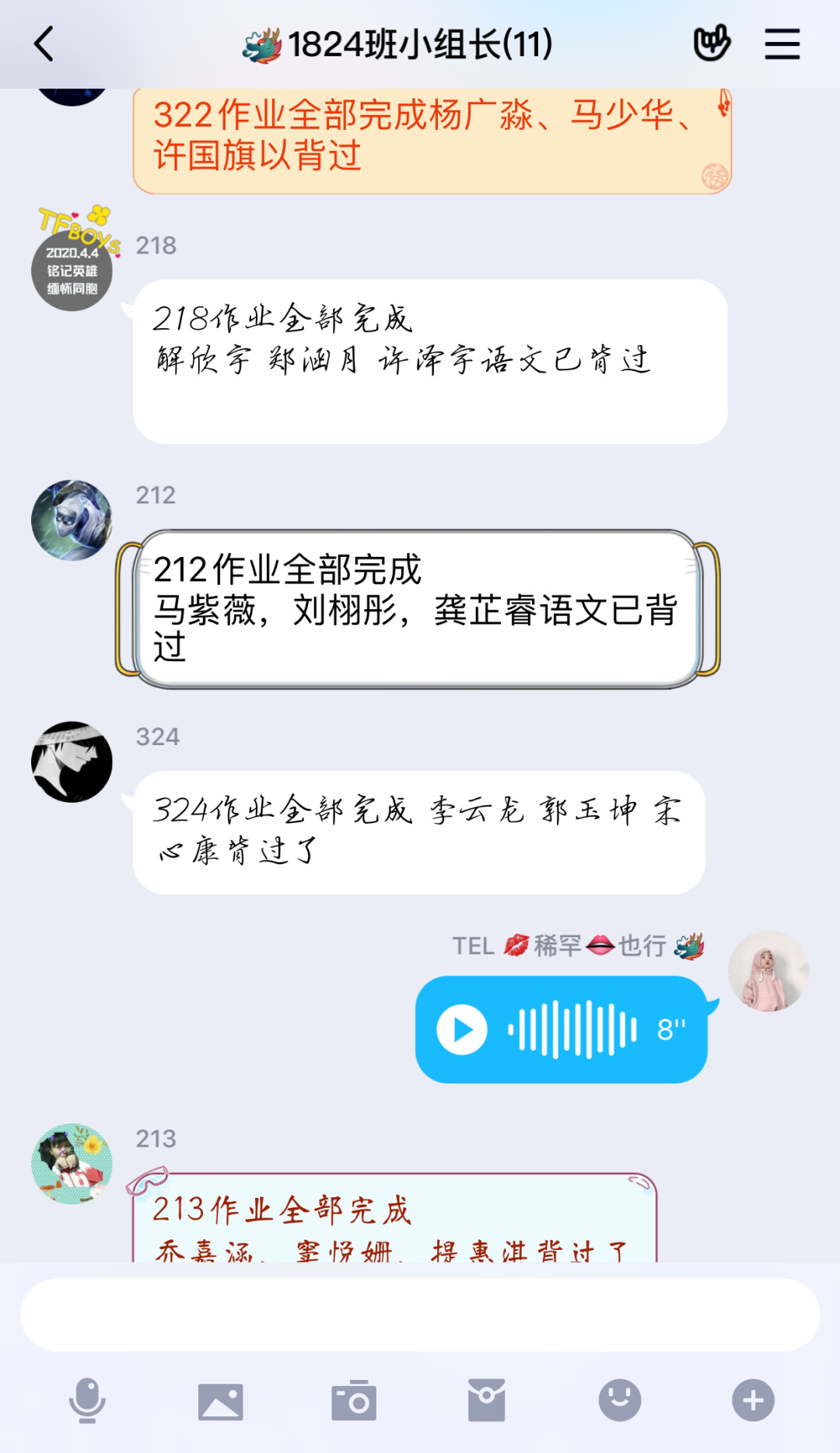 疫情期间,学风浓厚依旧是1824班的一大特色。学生们没有因为这次特殊的学习方式,而改变原有的好习惯。当然,家长对孩子的监督是这个特殊学习时期不可忽视的重要条件,1824班的老师们与家长齐抓共管,促进学生的进步。