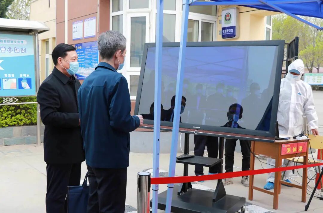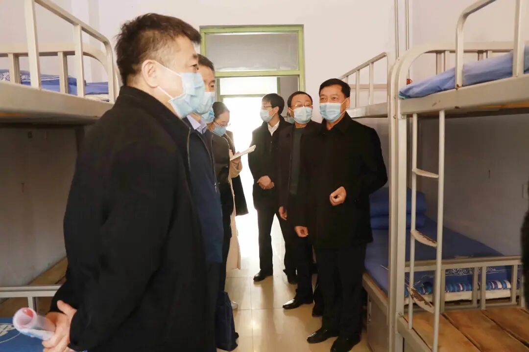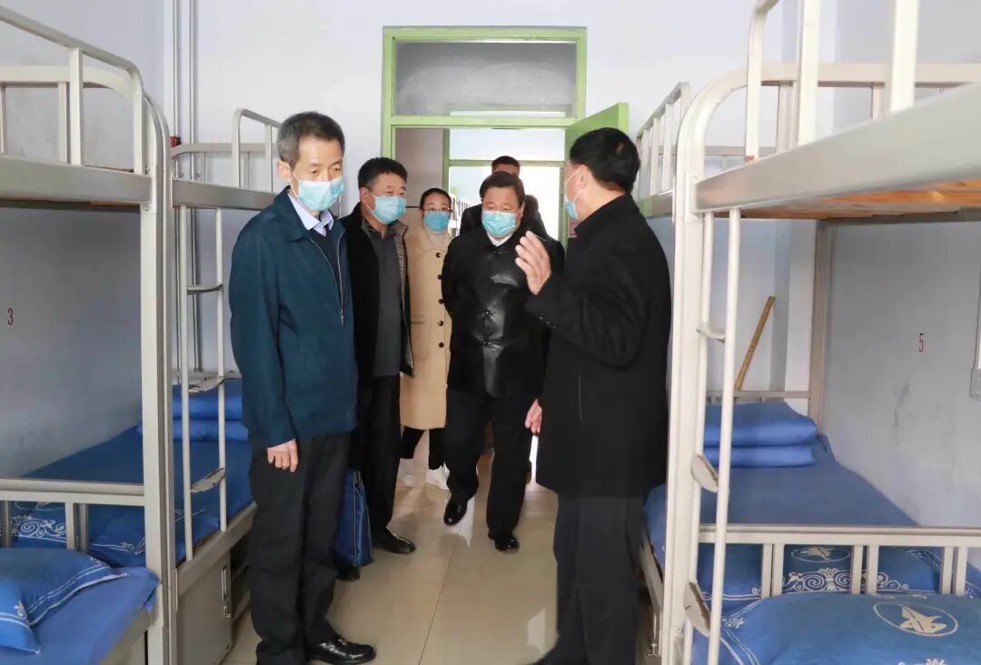 侯厅长一行深入到我校红外成像测温通道、防疫物资储备室、学生教室、学生宿舍、餐厅、留观室等场所进行实地察看,详细了解了学校防疫预案、物资准备、餐厅就餐,学生入学流程,以及近阶段线上教学、师生互动等情况。