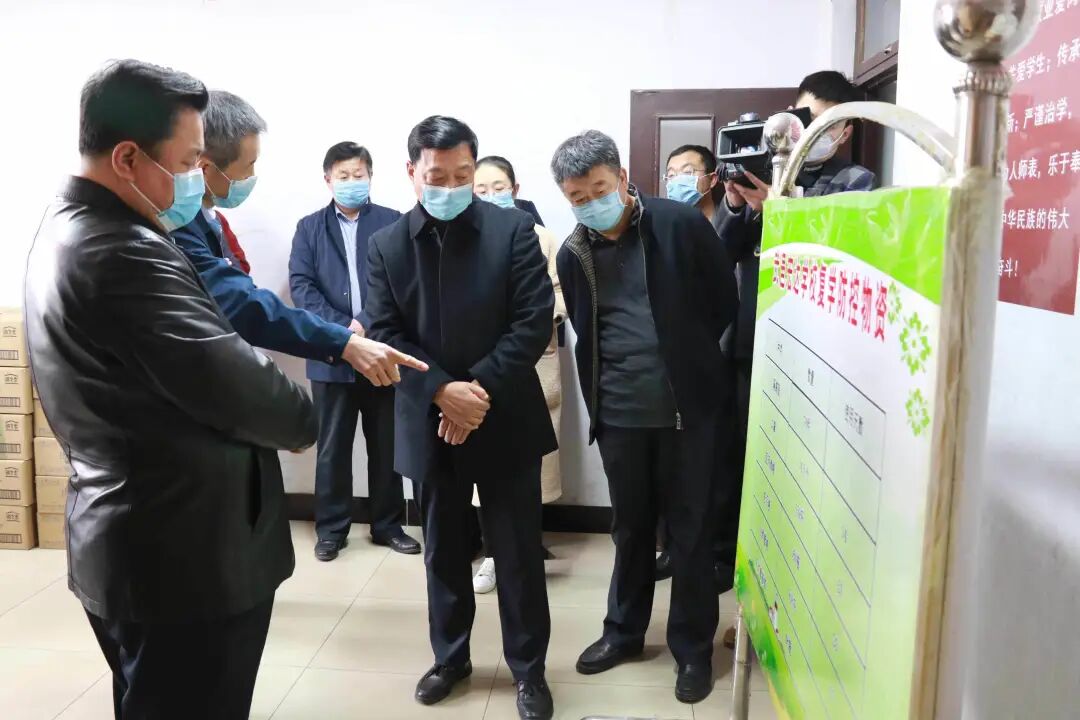 白志宏校长向各位领导详细汇报了学校关于疫情防控和学校复学工作准备情况。