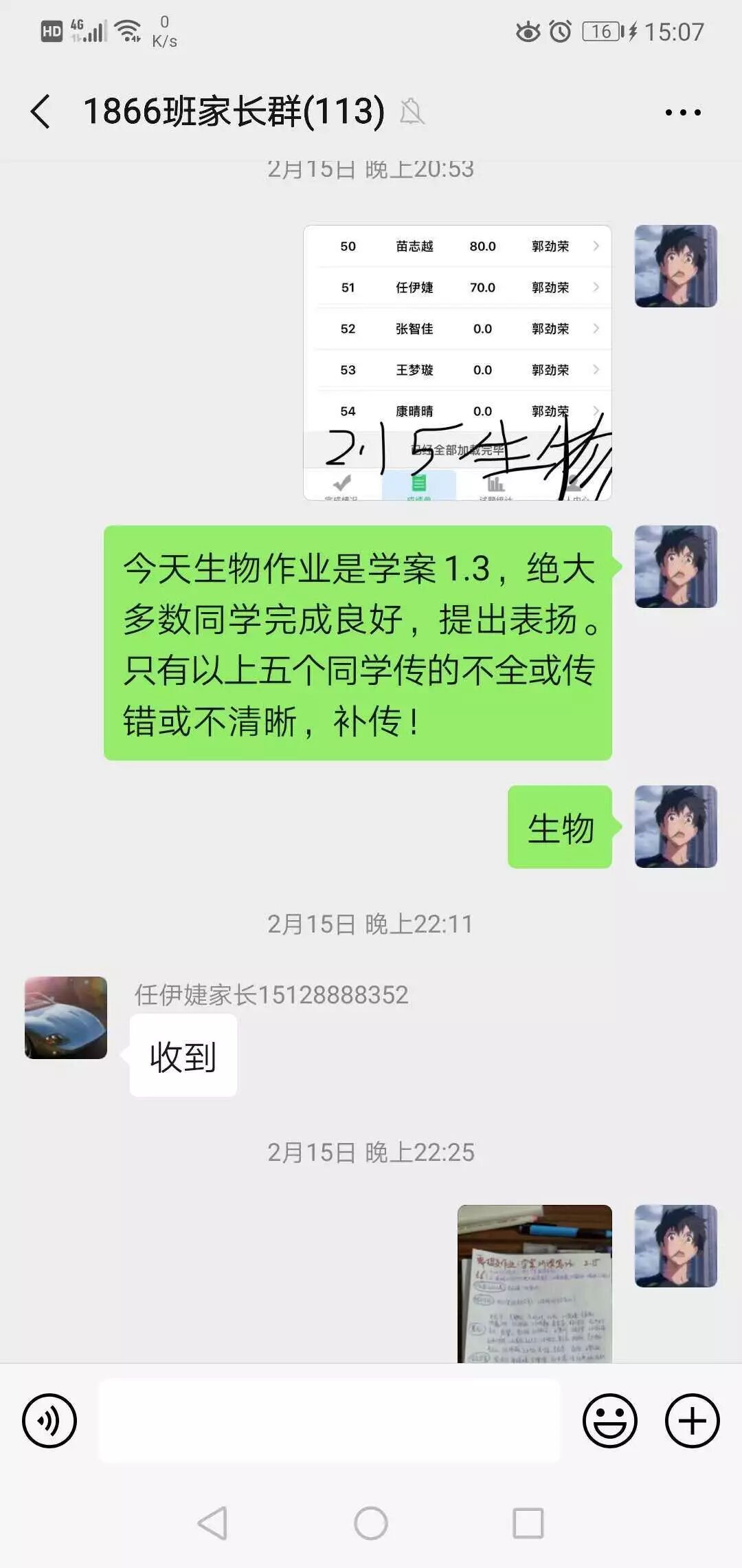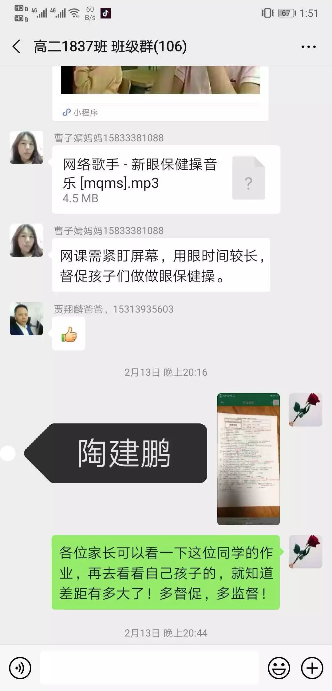 每一位学生都是老师的骄傲,为了帮助学生在家自觉主动、积极学习、坚持不懈地学习,老师也会按时督促学生学习,适时对学生进行表扬与鼓励。