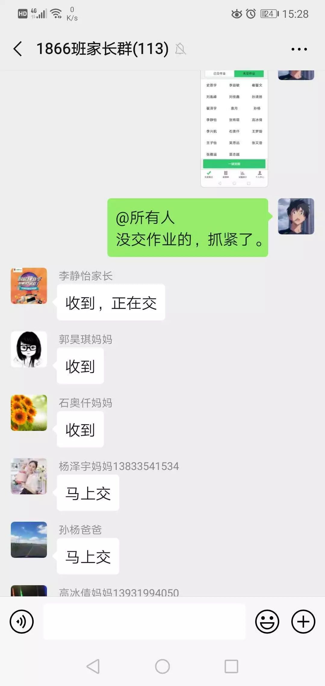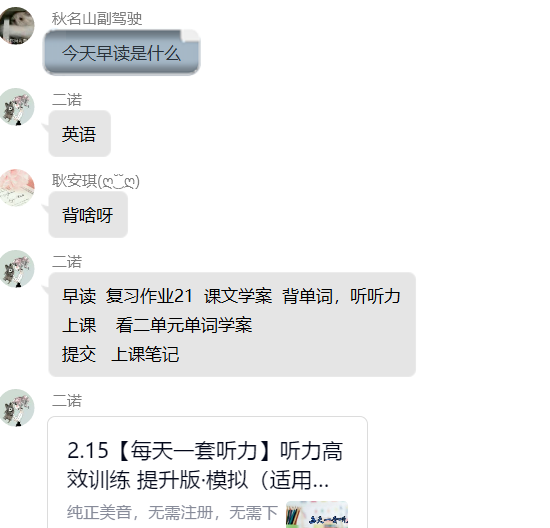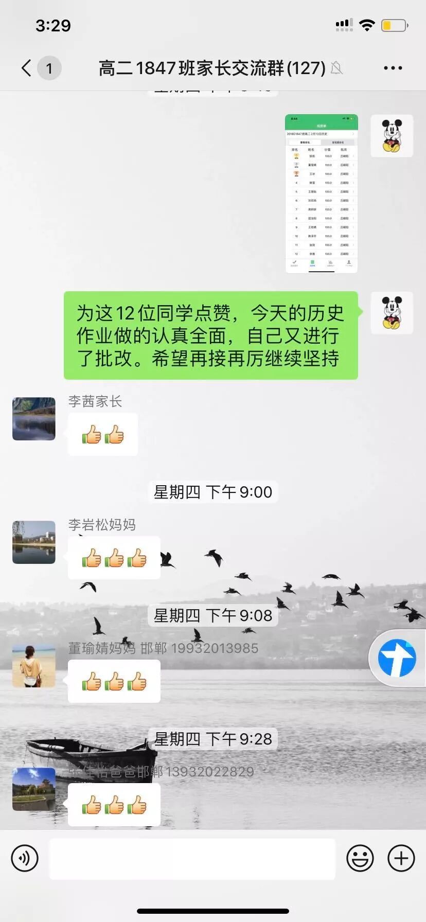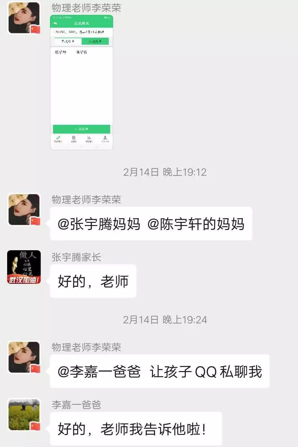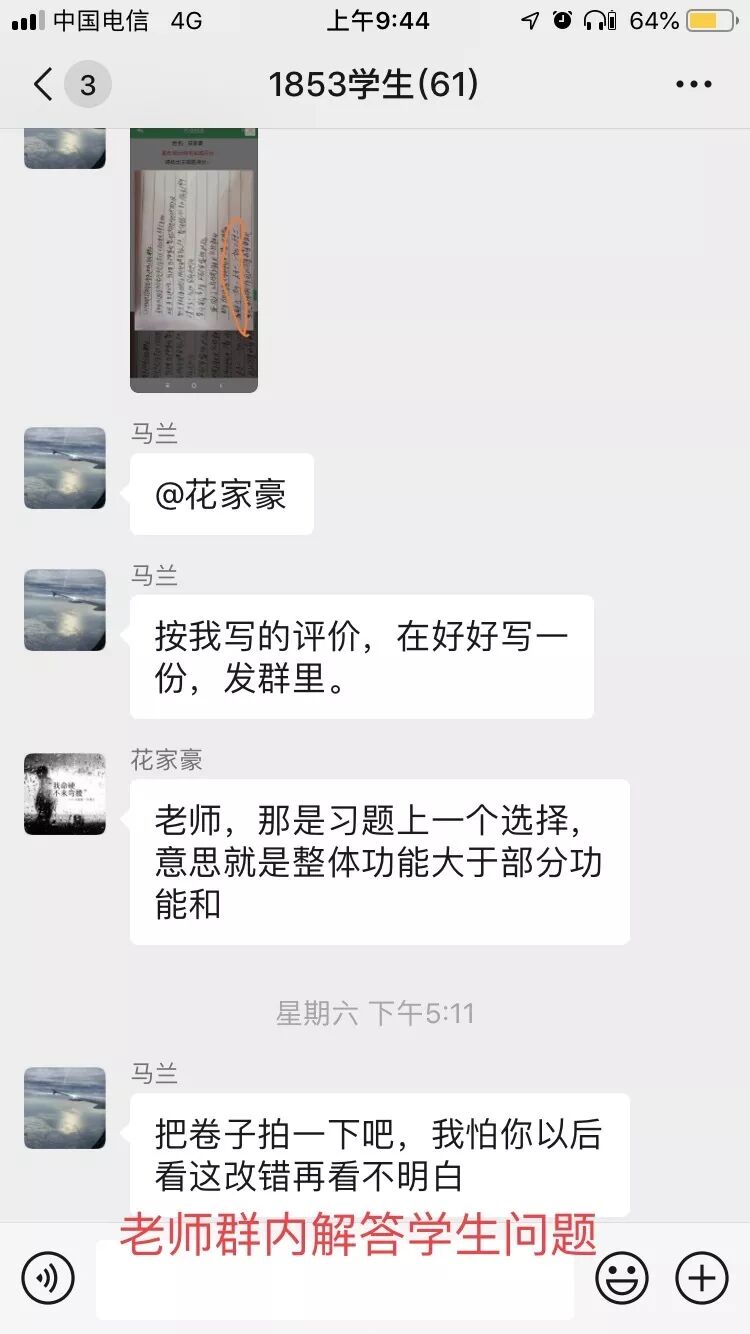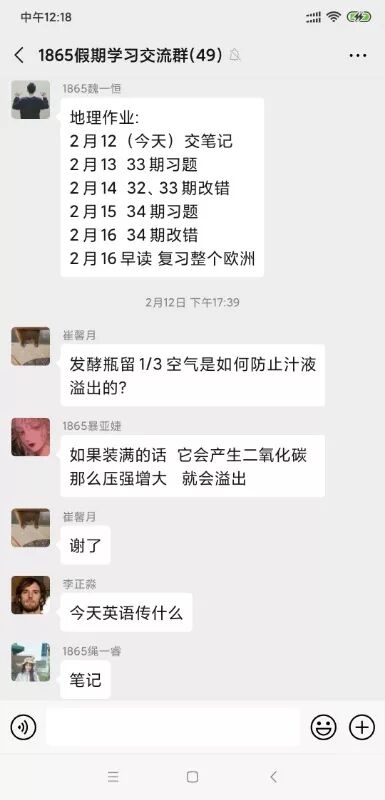 同学们在班级群里讨论问题,互相勉励,共同成长。