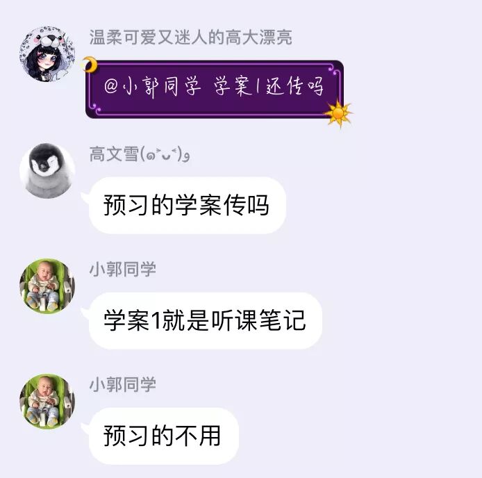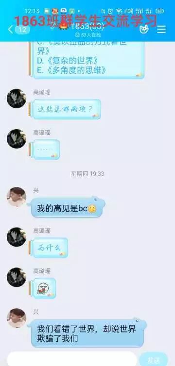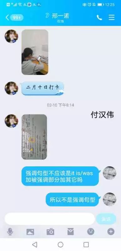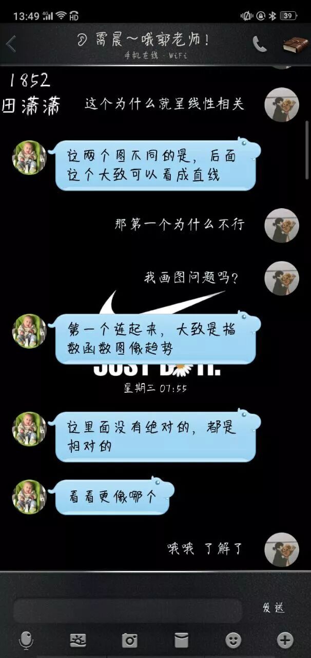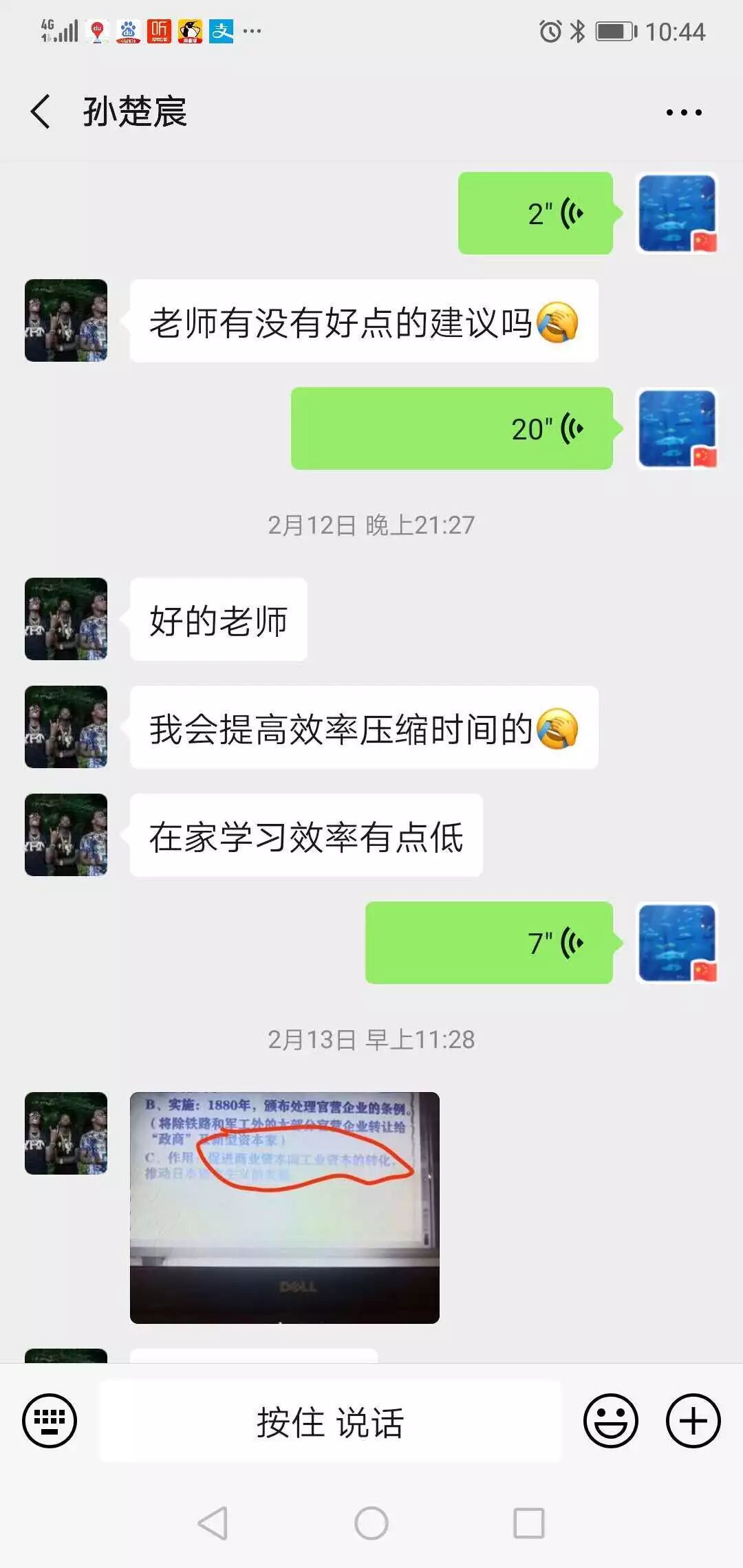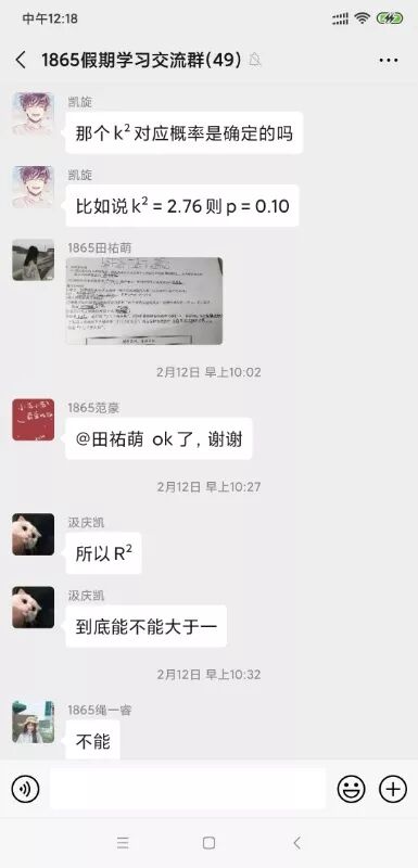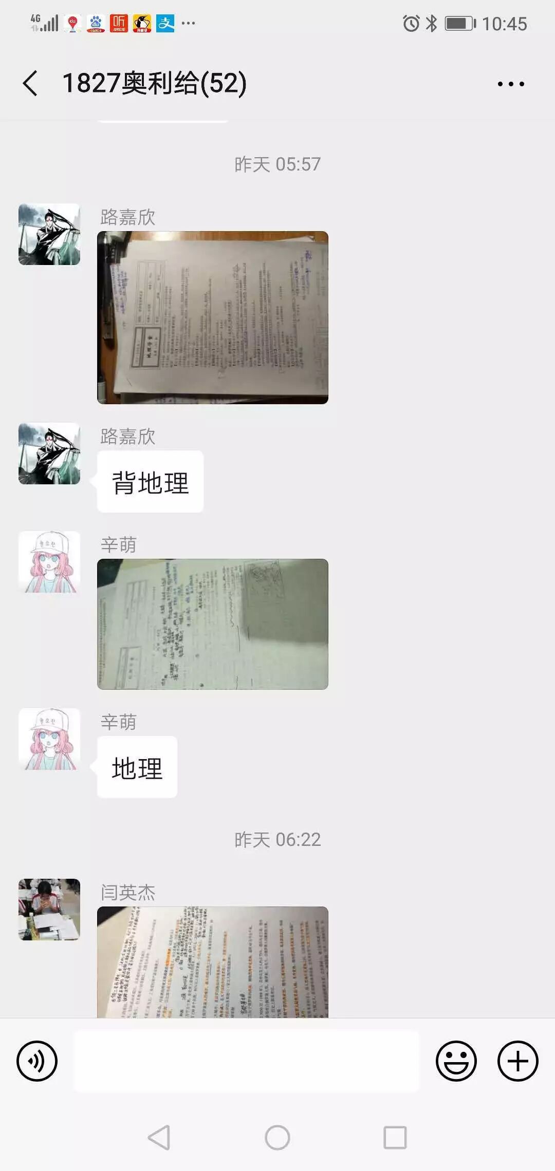 同学们在班级群里讨论问题,互相勉励,共同成长。