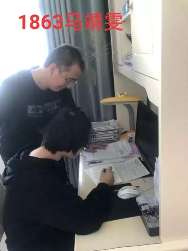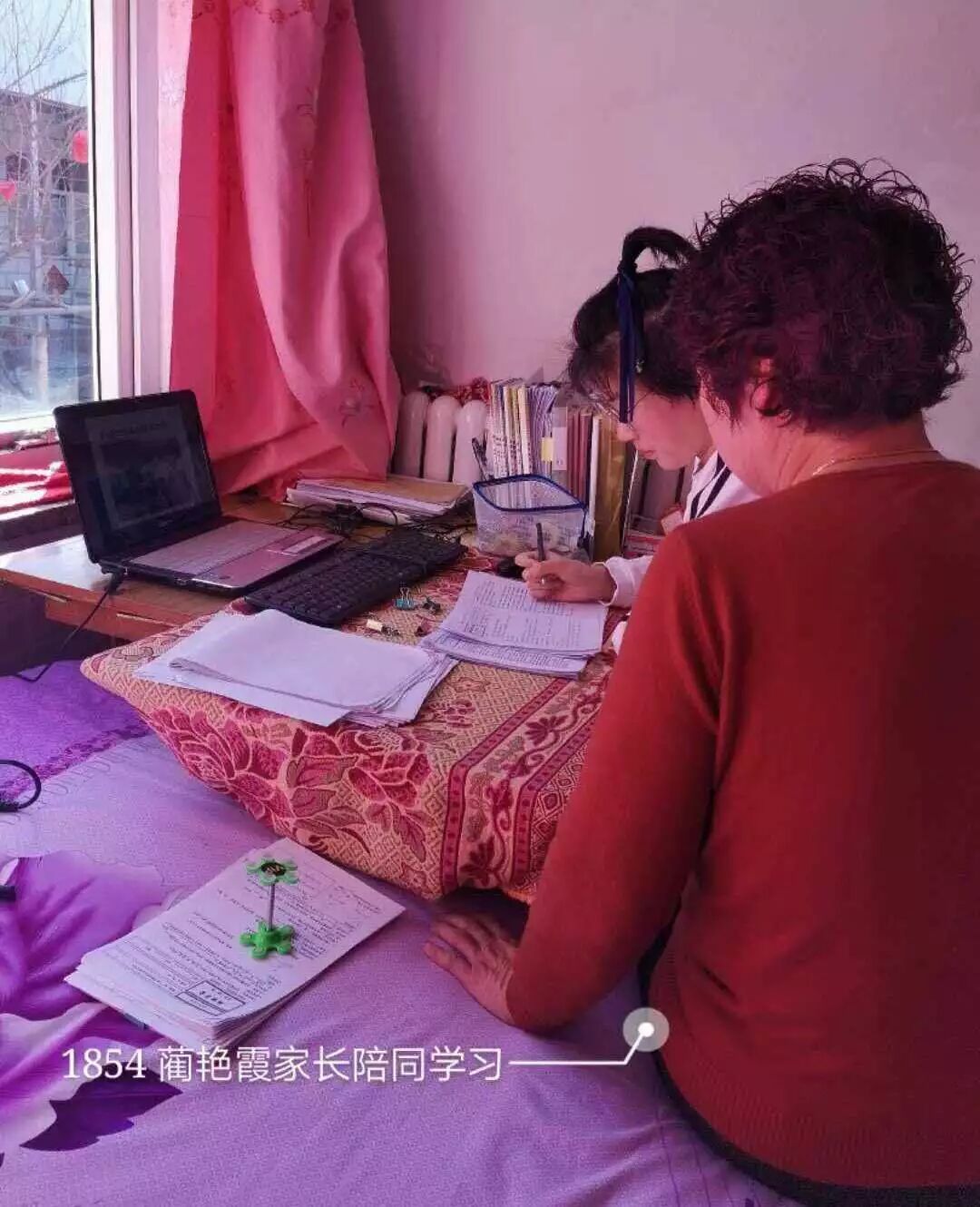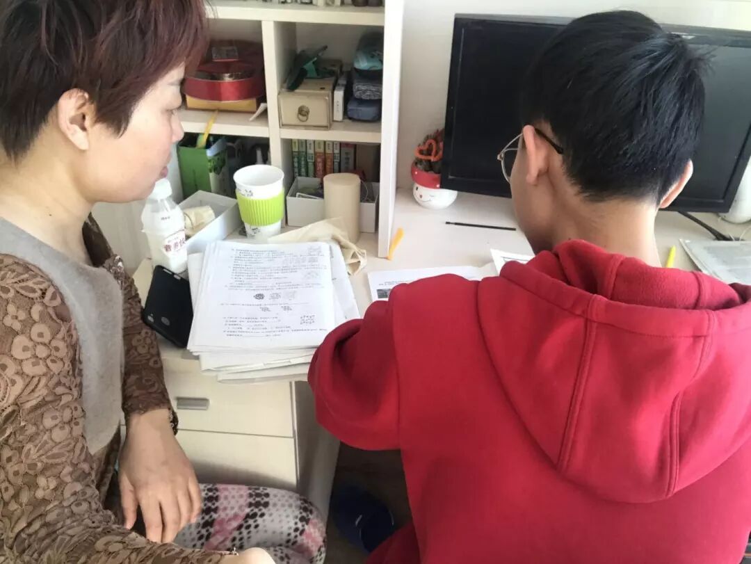 家长陪伴在学生身边,检查孩子的作业完成情况,为孩子加油打气,和孩子共同成长。