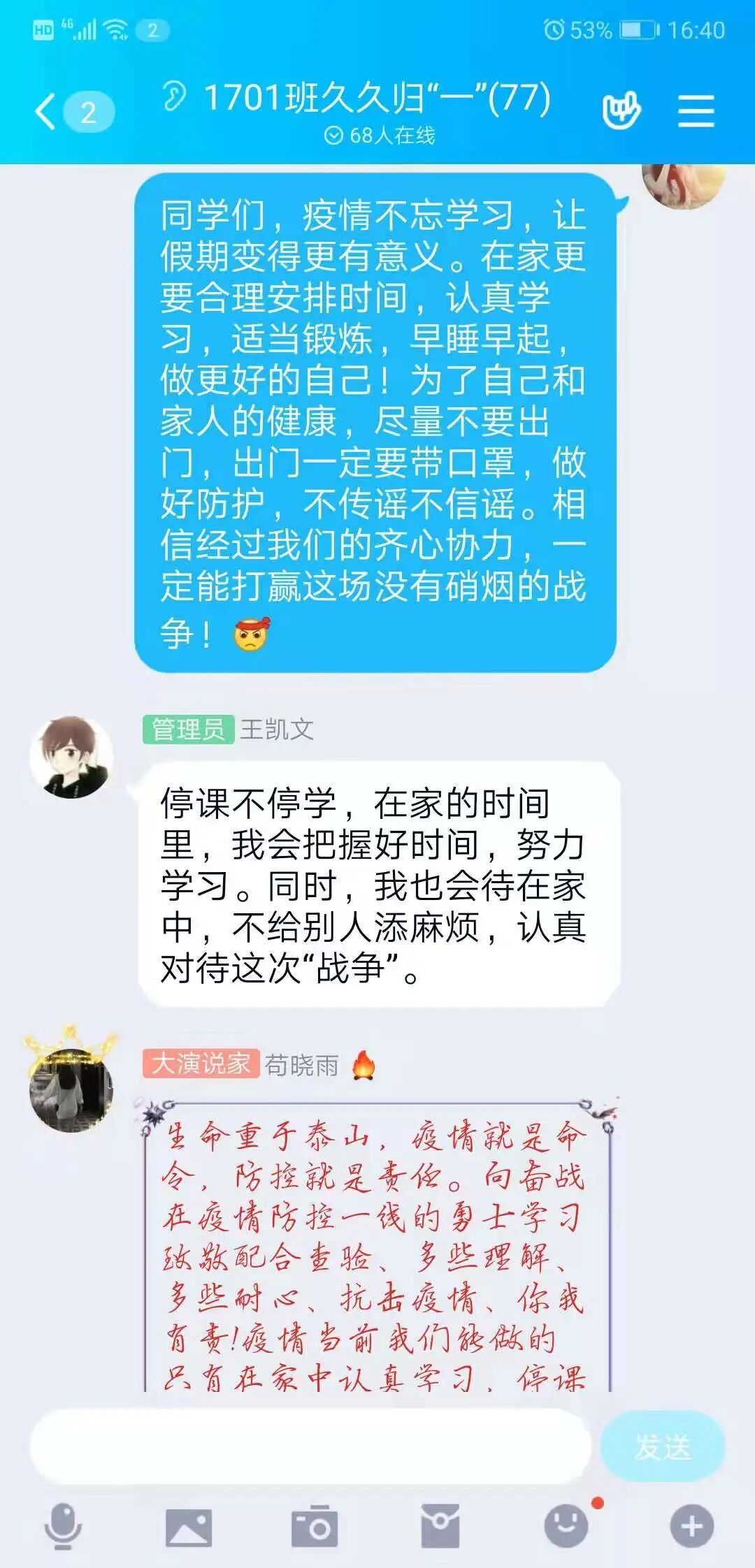 最后,希望同学们调整好心态,和冲锋在第一线的工作人员一起加油打赢这场无硝烟的战争。
