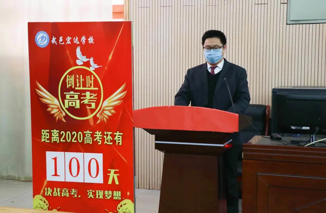 随后,刘校长为高考倒计时揭牌并发表励志讲话,标志着2020年高考100天冲刺活动正式开始。