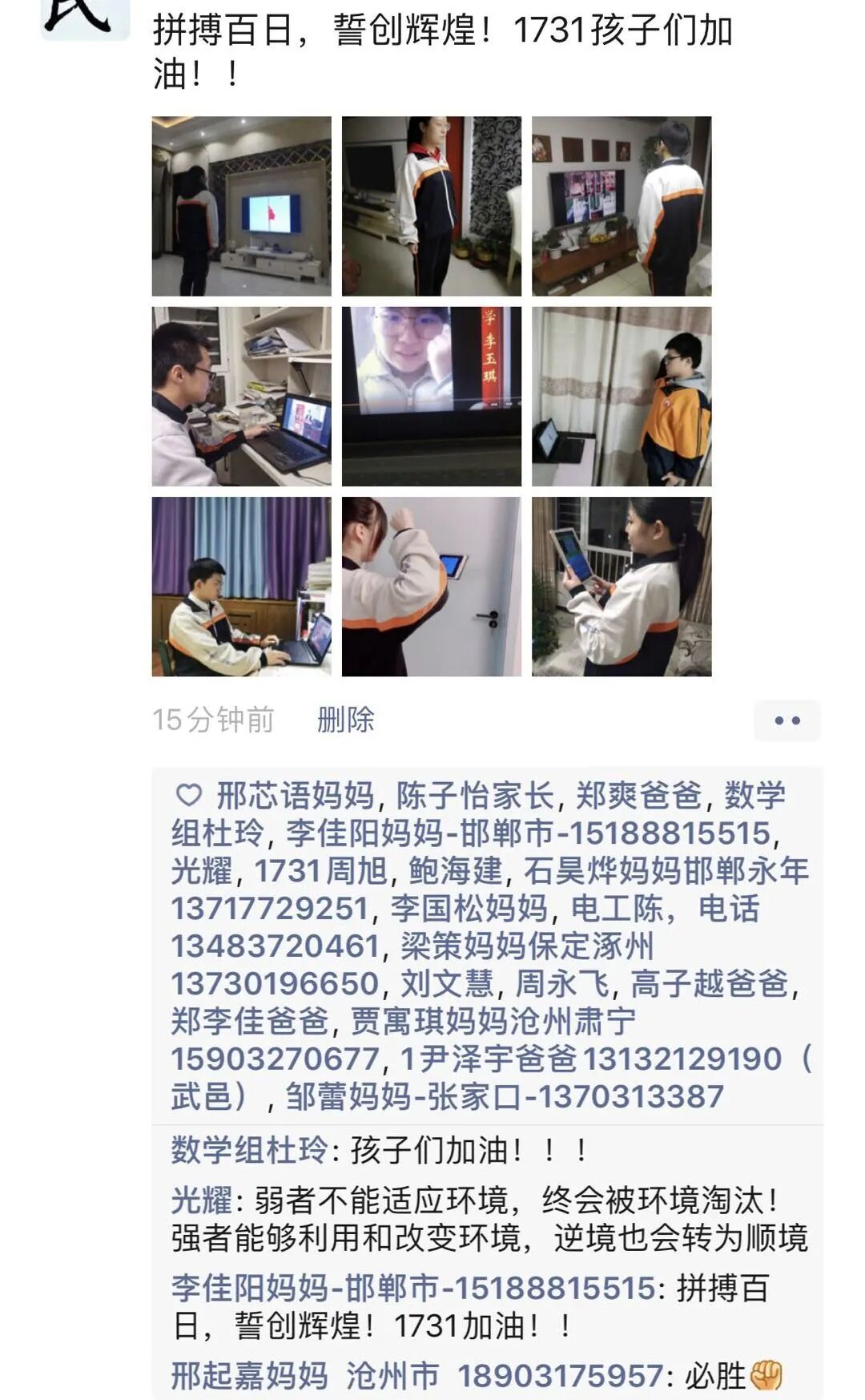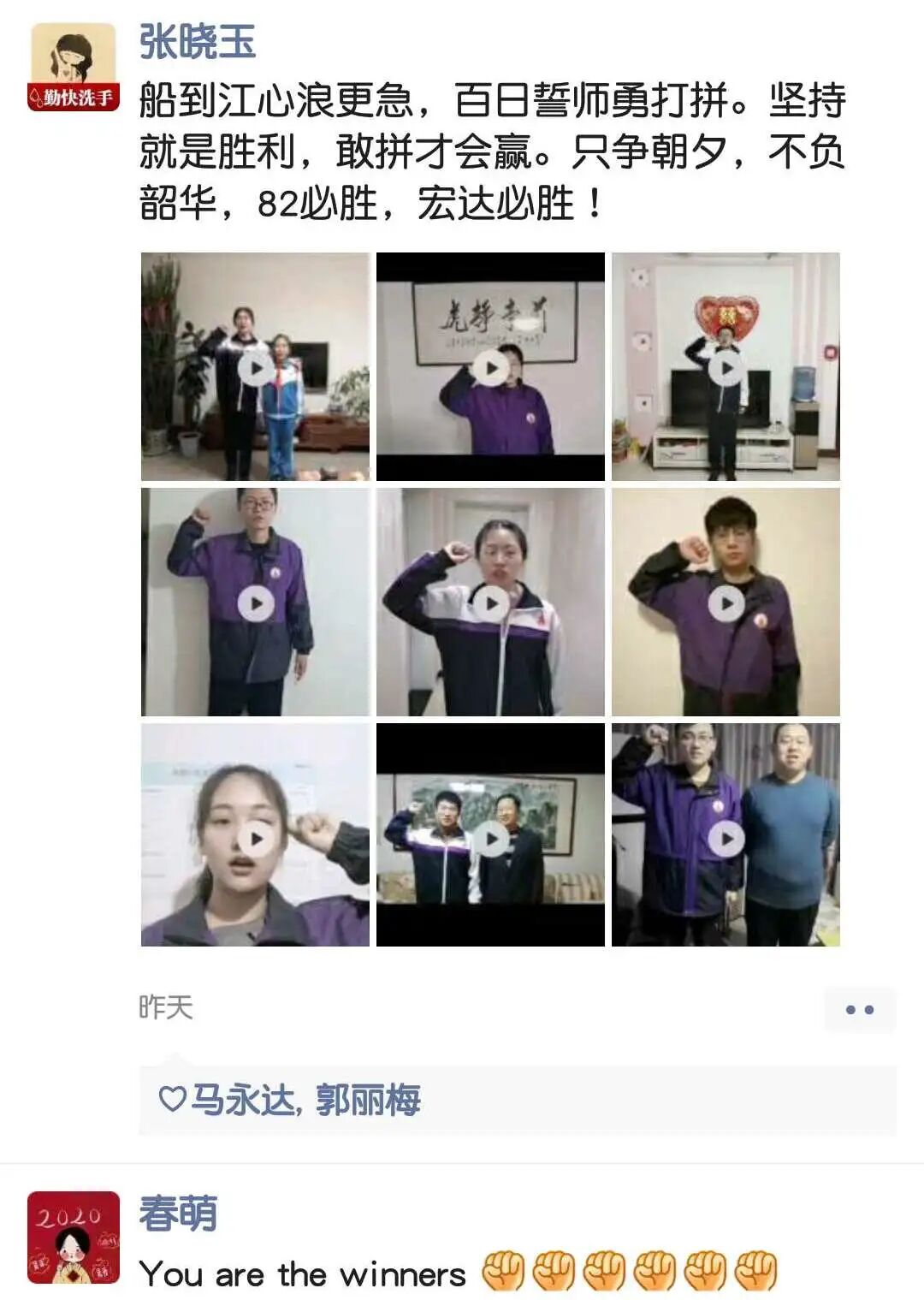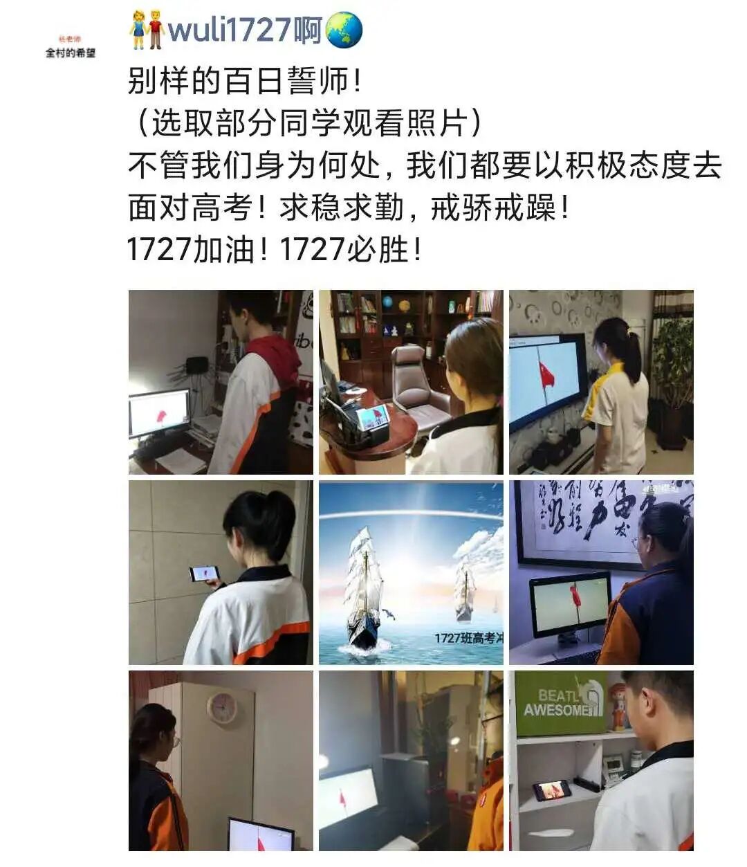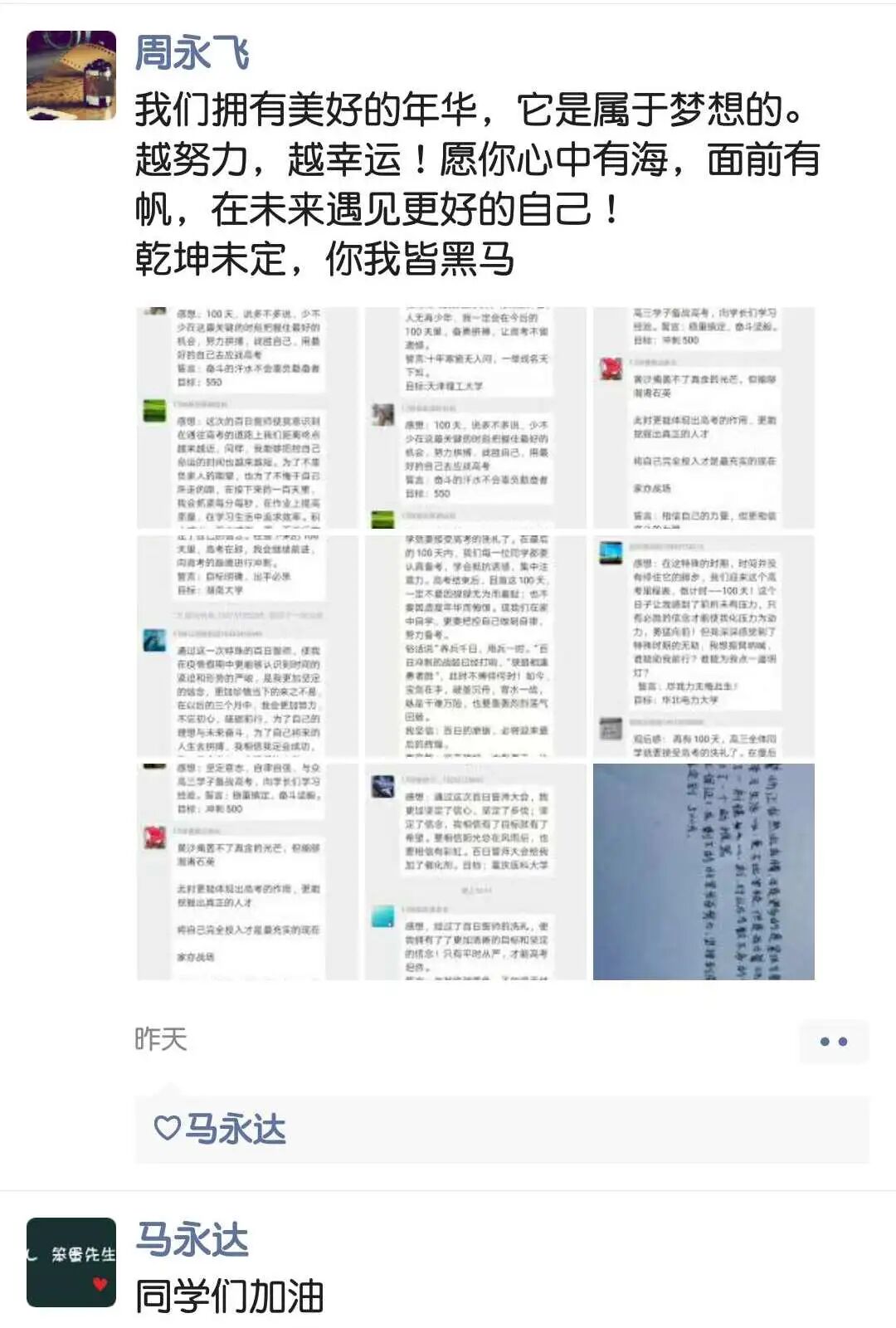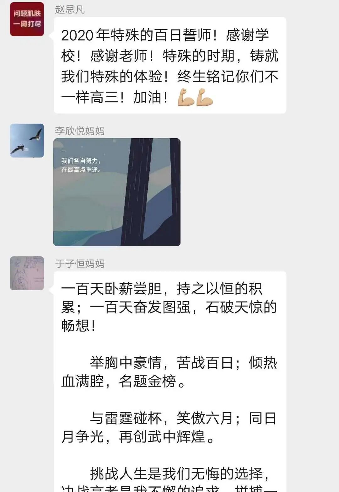 下面,请我们正在为梦想冲刺的高三学子们接下这波家长和老师的祝福与鼓舞!