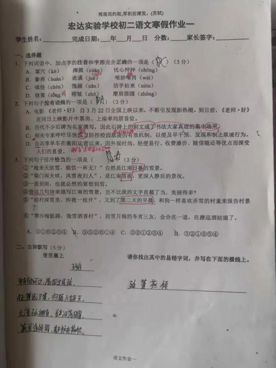 抗击疫情宅在家,自主学习美如画(宏达实验初二年级)
