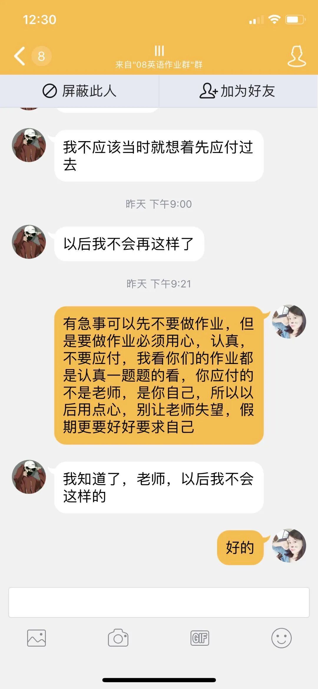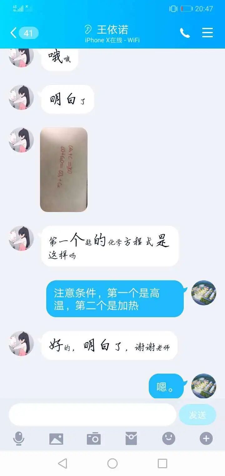 在特殊时期以特殊的方法指导学生,初二教师用微信、视频等方式与学生沟通交流,不分早晚地指导学生。