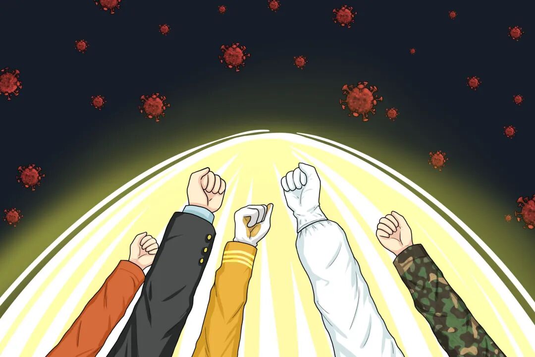 也许在病毒开始肆虐传播的那刻起,战斗就已打响。逆行的白衣战士昼夜不停地救死扶伤,以口罩、防护服为战袍;以“疫情不出,头发不留”的决心,“不计报酬,不论生死”的责任为武器;以“战疫到底,废寝忘食”的坚持为战术。雷神山、火神山、钟南山。三山齐震抗病毒;国内捐、国外捐、李兰娟,齐心协力振中华。多少个日夜,白衣战士们满脸勒痕,可泱泱逆行之下怎会畏瘟之狂虐。国疆茫茫,河山犹在,我们一直在与病毒抗争,与时间赛跑,中国人民从未退缩。