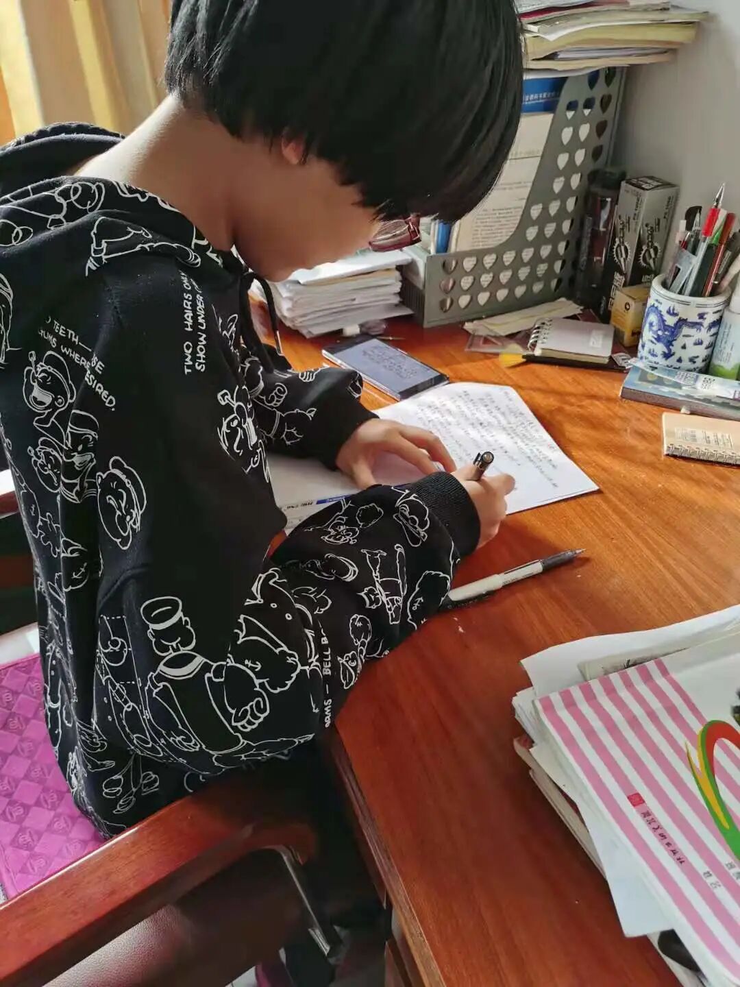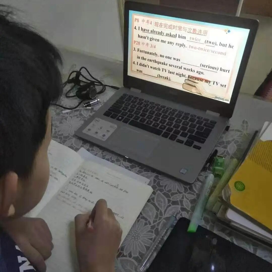 同学们每天在家提前做好看视频课的准备,每科一个笔记本,所有课程都认真做笔记,做到及时复习。