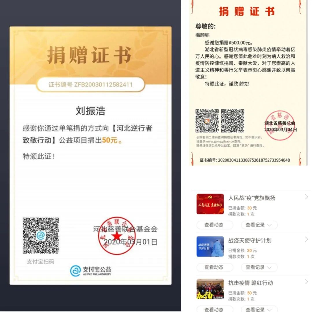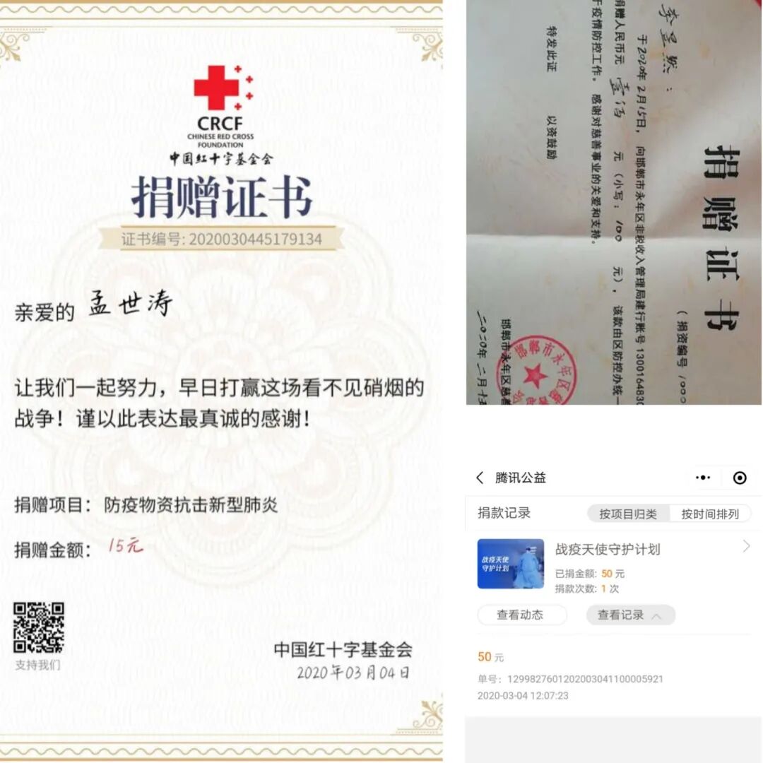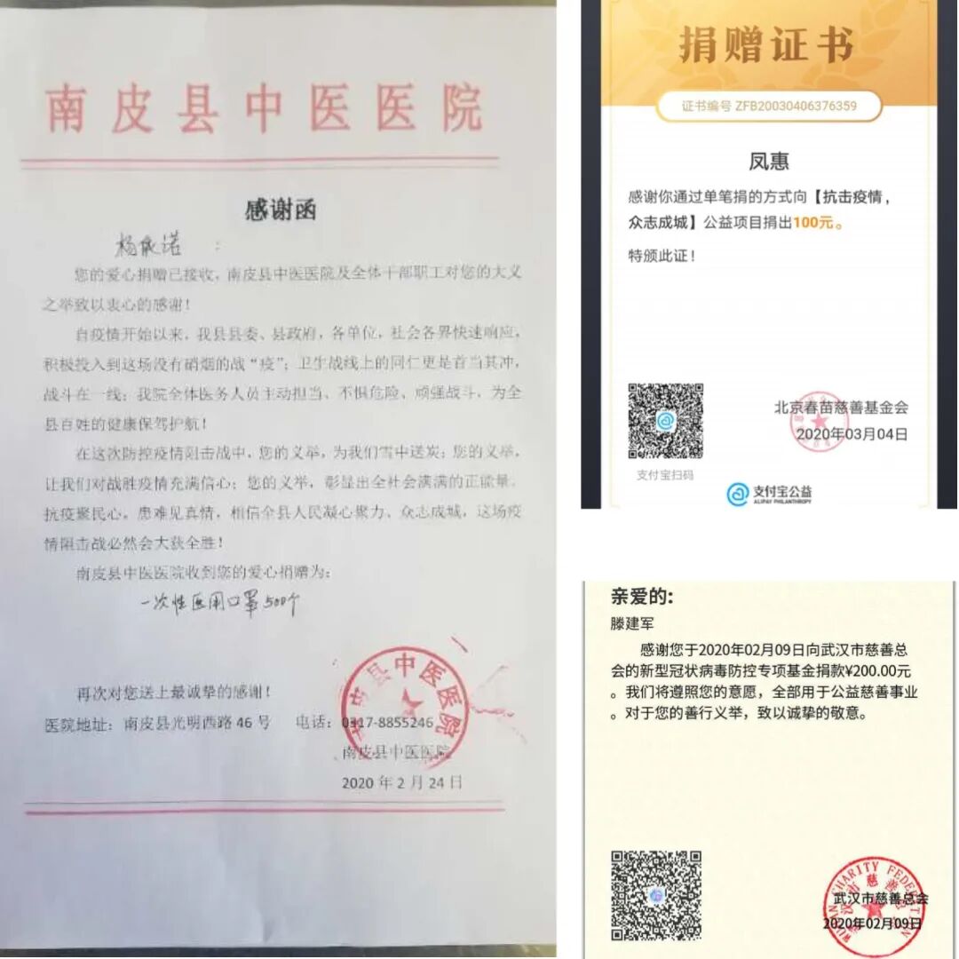 我校学子在家中通过多种途径为逆行者捐款、捐赠物资,向逆行者致敬,为“抗疫”一线的所有人加油,希望尽自己的微薄之力,把祝福带给逆行者,愿他们能保护好自己,平安归来!