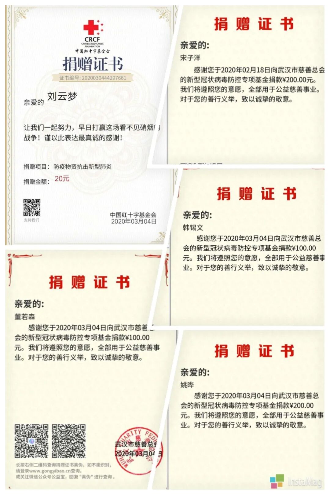 以下为部分学生捐赠记录: