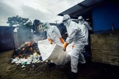 远处的那位医生站在救护车旁,随时做好准备,他全身都被包裹在防护服里。从头到脚都是白的,只有眼睛那里是蓝紫色的防护镜片。