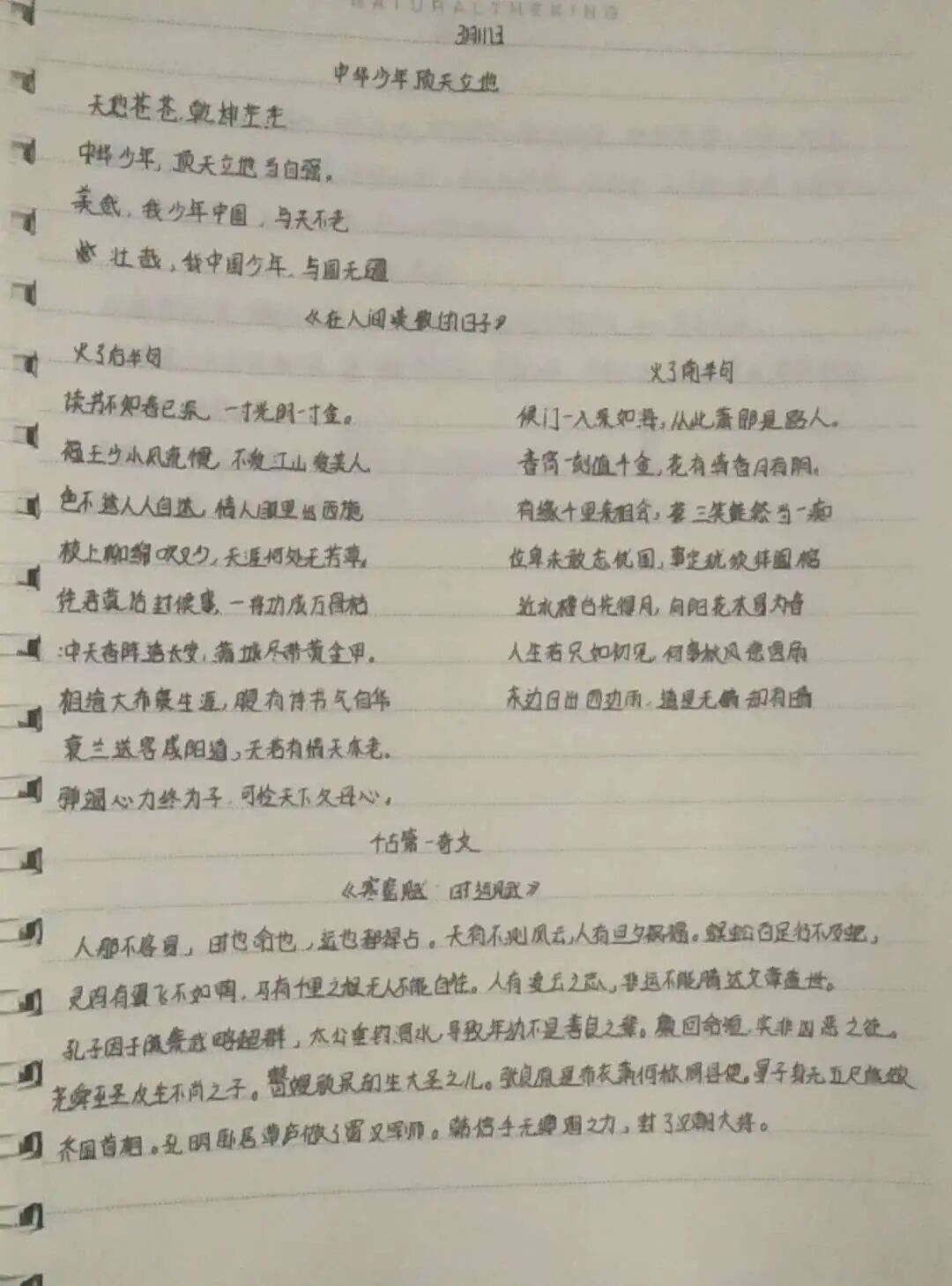 班上有一个孩子,很是腼腆内向,但他是几个爱向我请教问题的学生之一,也是唯一一个多次请教我的学生,直到一次我布置完作文后,这孩子对我表达了想好好学习写作的想法,但他又毫无头绪,这时他说的这句话打动了我:“我喜欢读书,喜欢写作,即使写它很难,虽然我不是天生的强者,但我的骨子里流着不服输的血液。”没有豪言壮语,但是我看了这句话背后,学生的自强自律,学生的不服输念头,学生的兴趣需求。于是我征求了同学们的意见,不同学习兴趣的同学自发建群,互帮互助,共同学习。