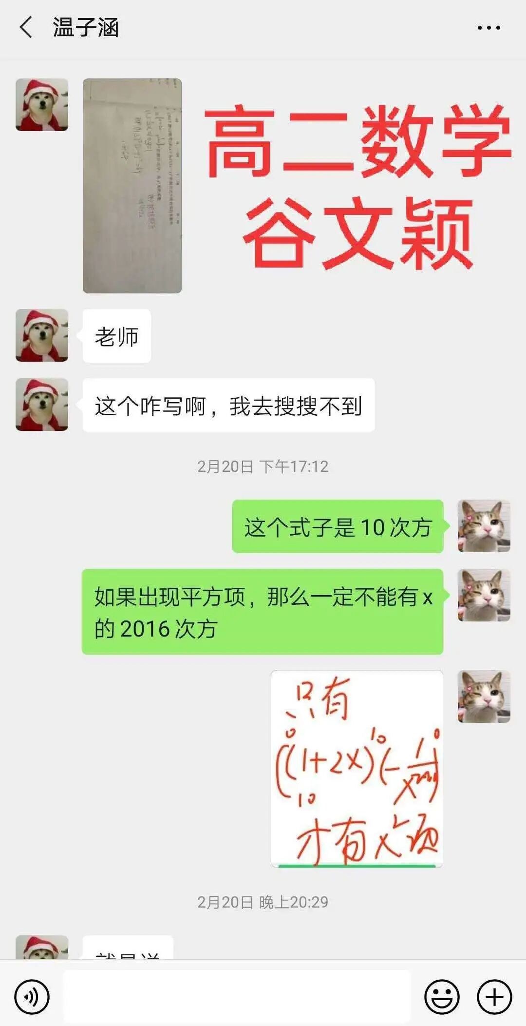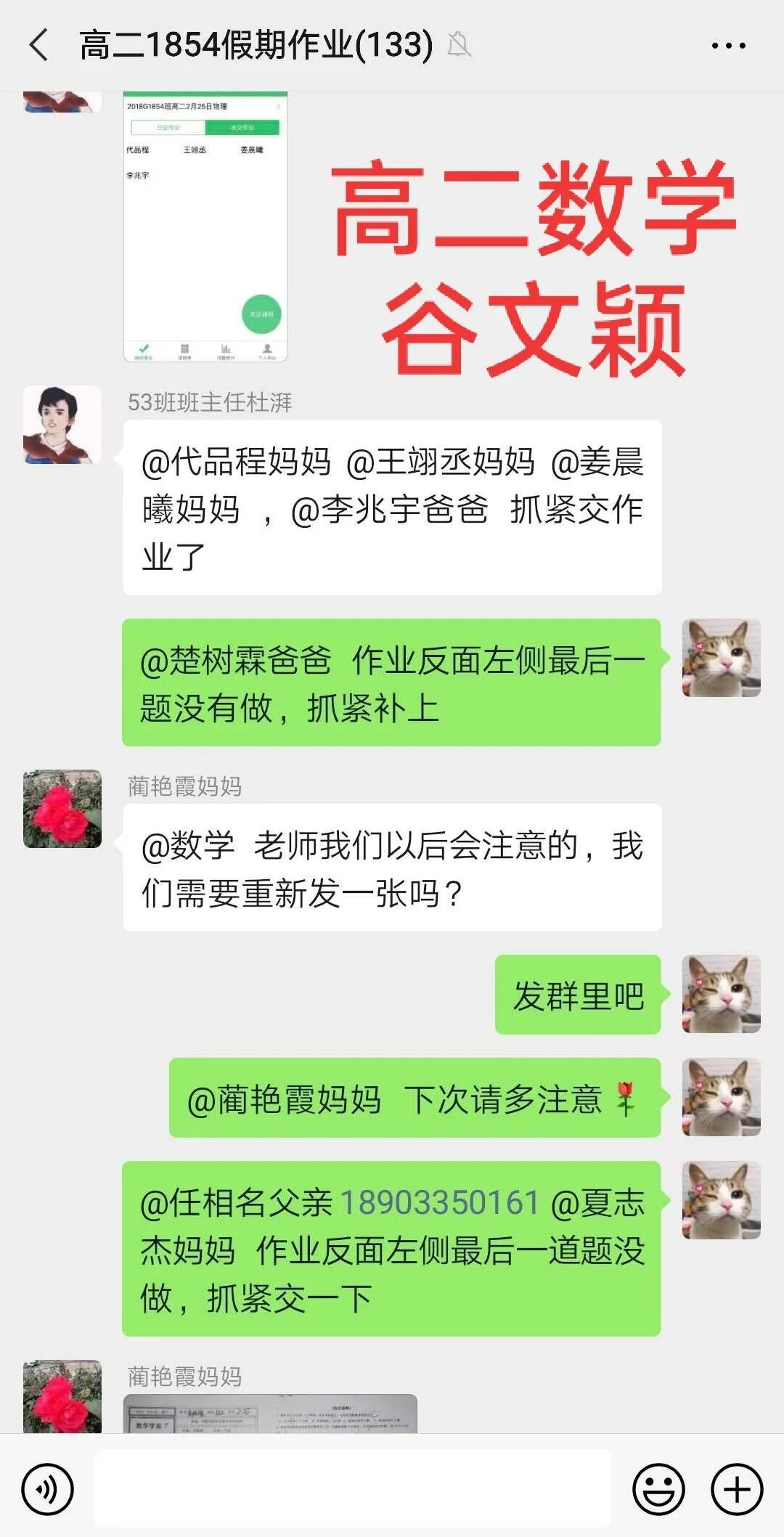 每天积极听取视频课,完成作业并且在学案、作业上标注重难点,仔细批改每一份作业并做好批改记录,及时与学生沟通作业中存在的问题。对学生提出的疑问积极通过QQ 或微信写出详细过程拍成照片或录制小视频的方式进行讲解,耐心辅导每一位学生。