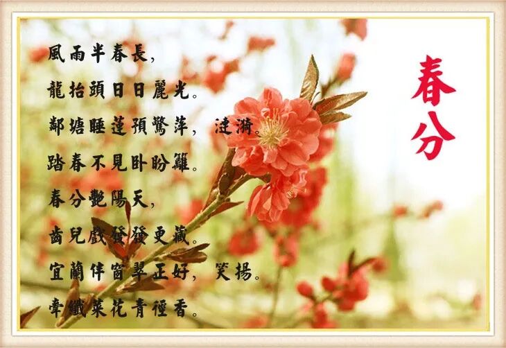 春分,又称“日中”、“日夜分”、“仲春之月”,是“二十四节气”之第四个节气。“春分者,阴阳相半也。故昼夜均而寒暑平”。一个“分”字道出了昼夜、寒暑的界限。历书中记载“斗指壬为春分,约行周天,南北两半球昼夜均分,又当春之半,故名为春分。
