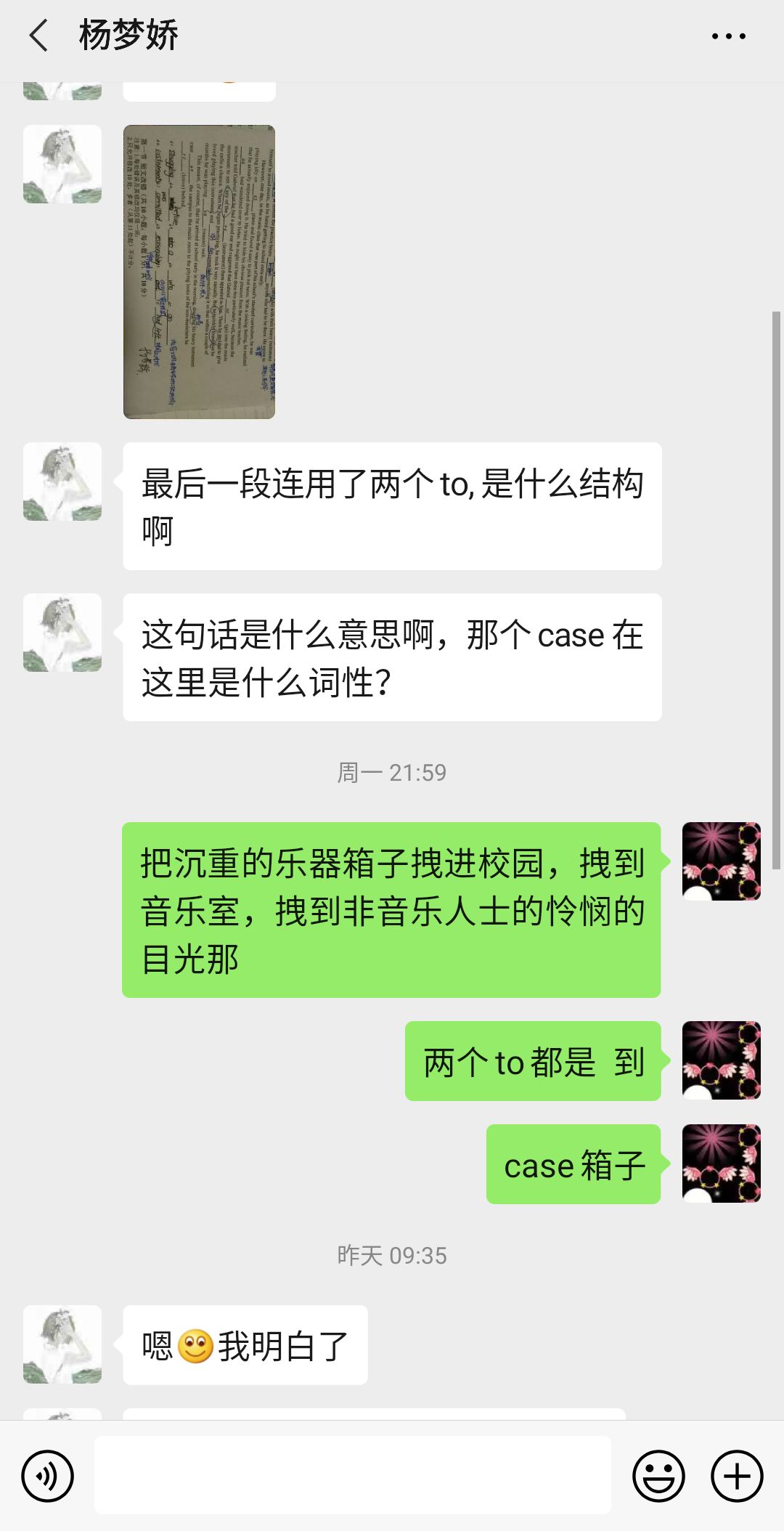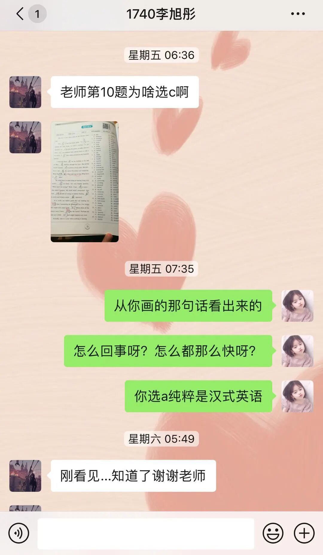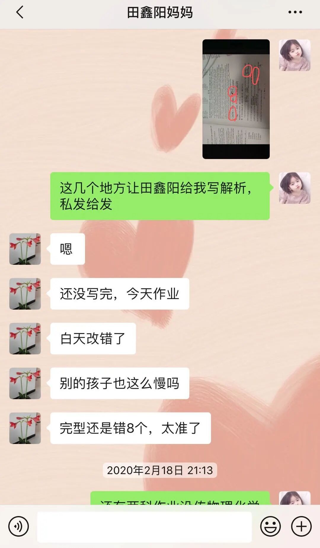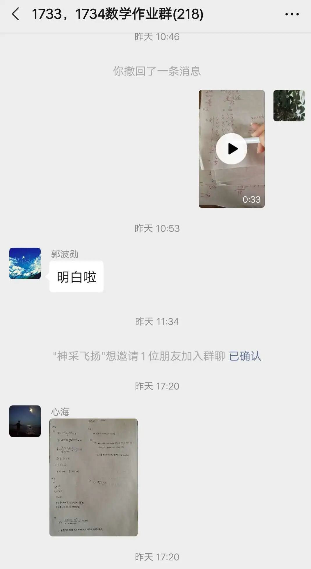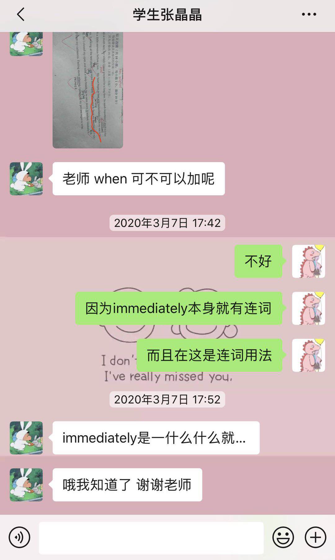 在批阅作业的过程当中,对有问题的作业,边判边截图,在所截图片中标出学生的错误,通过微信发给学生,要求学生把错误改正并语音解释给老师听。对于作业不认真的同学,及时微信联系。批改完作业之后,老师会在学生群中把典型错误以及其延伸,拓展出来让学生记住。在平时,会让学生在传新作业的基础上把上节课所做题所听课笔记一并上传,一一检查后,家长群内通报(表扬加批评)。学生问的比较集中的问题,就在学生群里及时讲解回答。