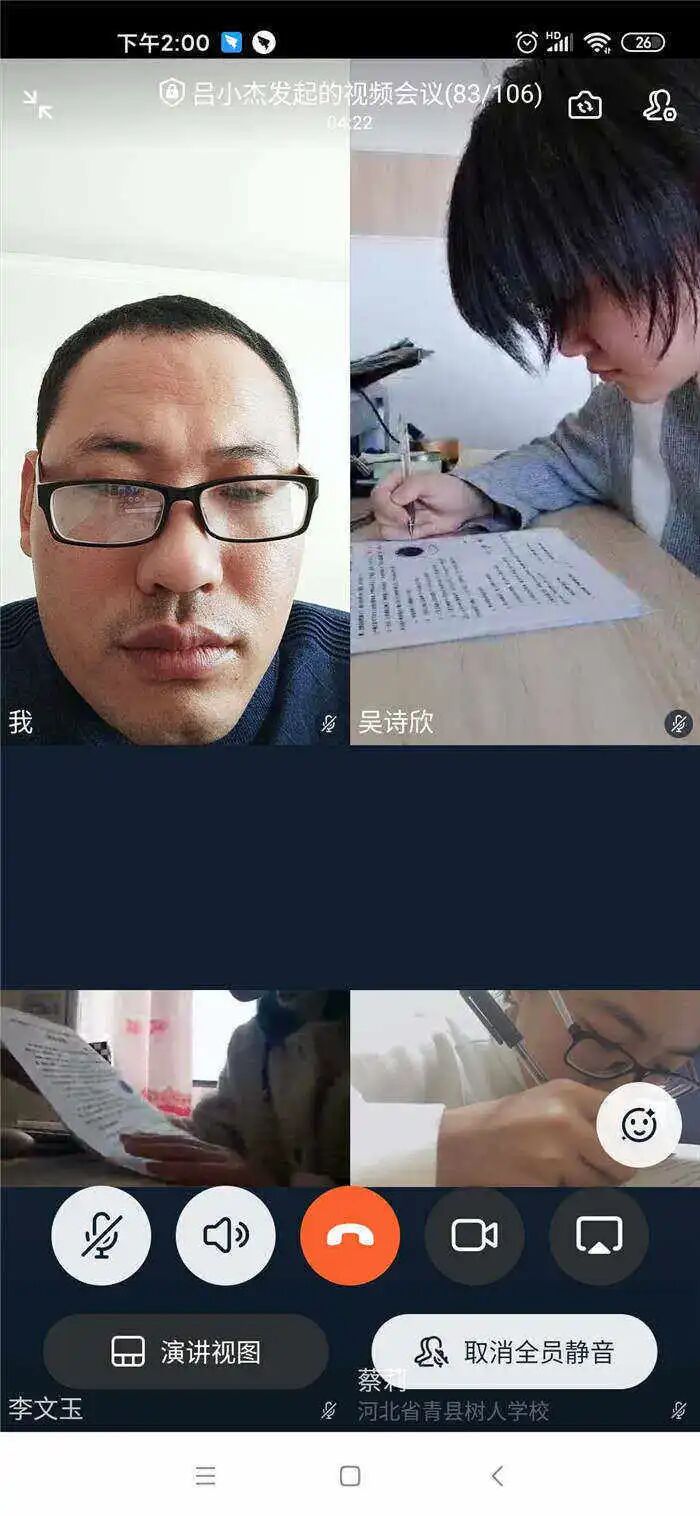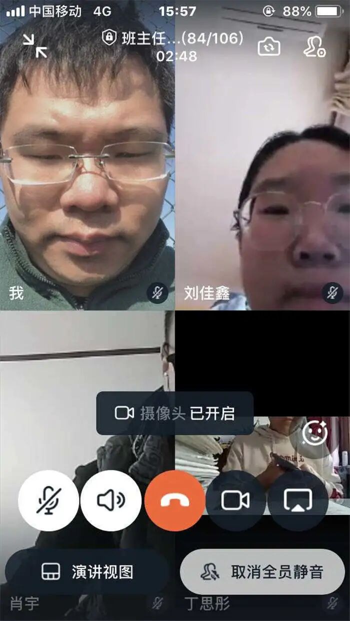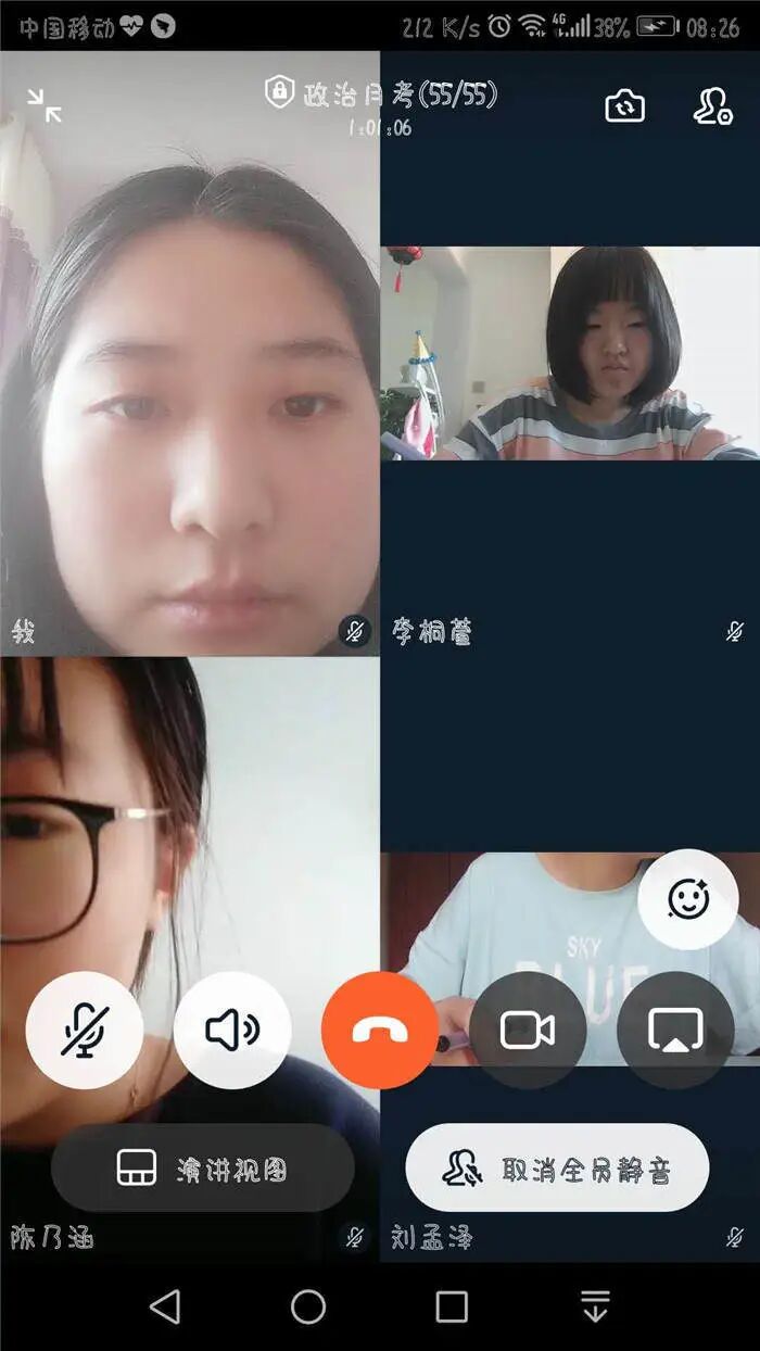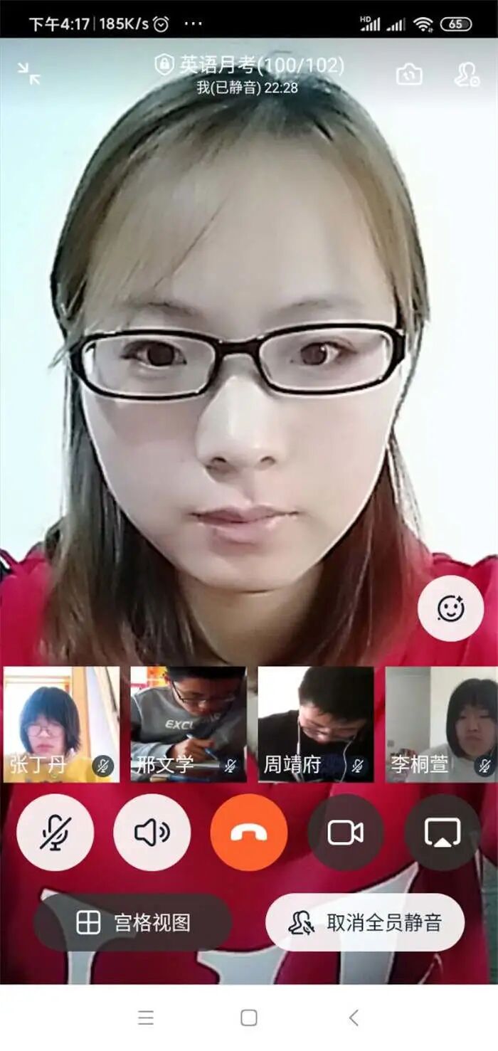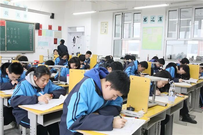 没有了宽敞的教室,没有了周围同学沙沙的写字声,有的是独处一室的静谧。老师虽然不会像往常一样在教室里巡场了,但是他们的视线一刻也没有离开同学们,依旧时刻关注着同学们。