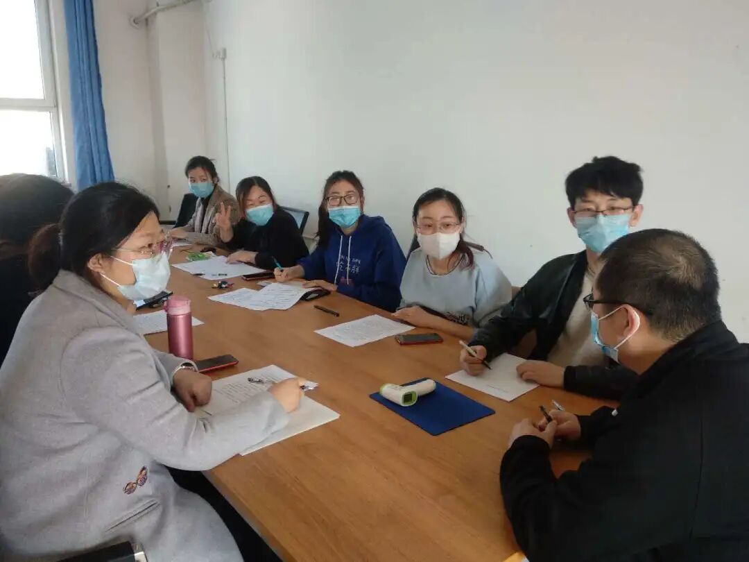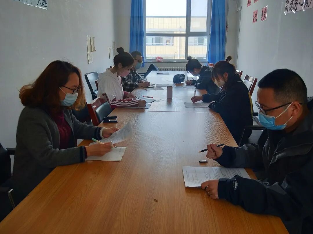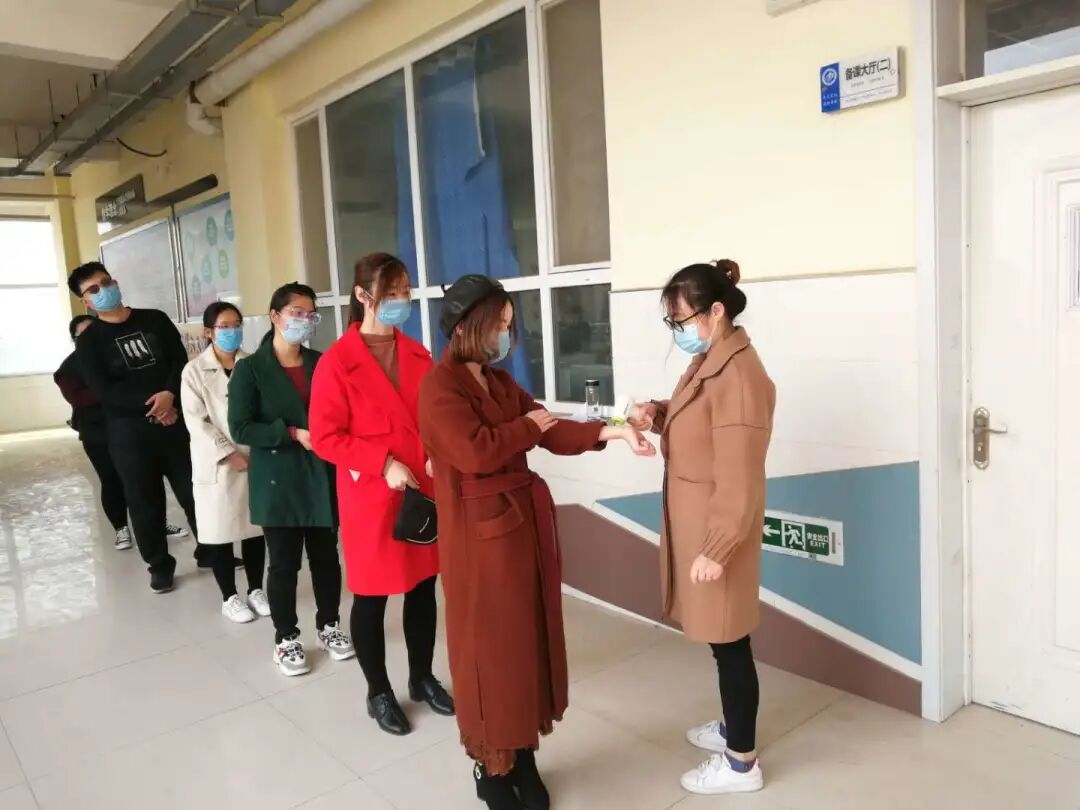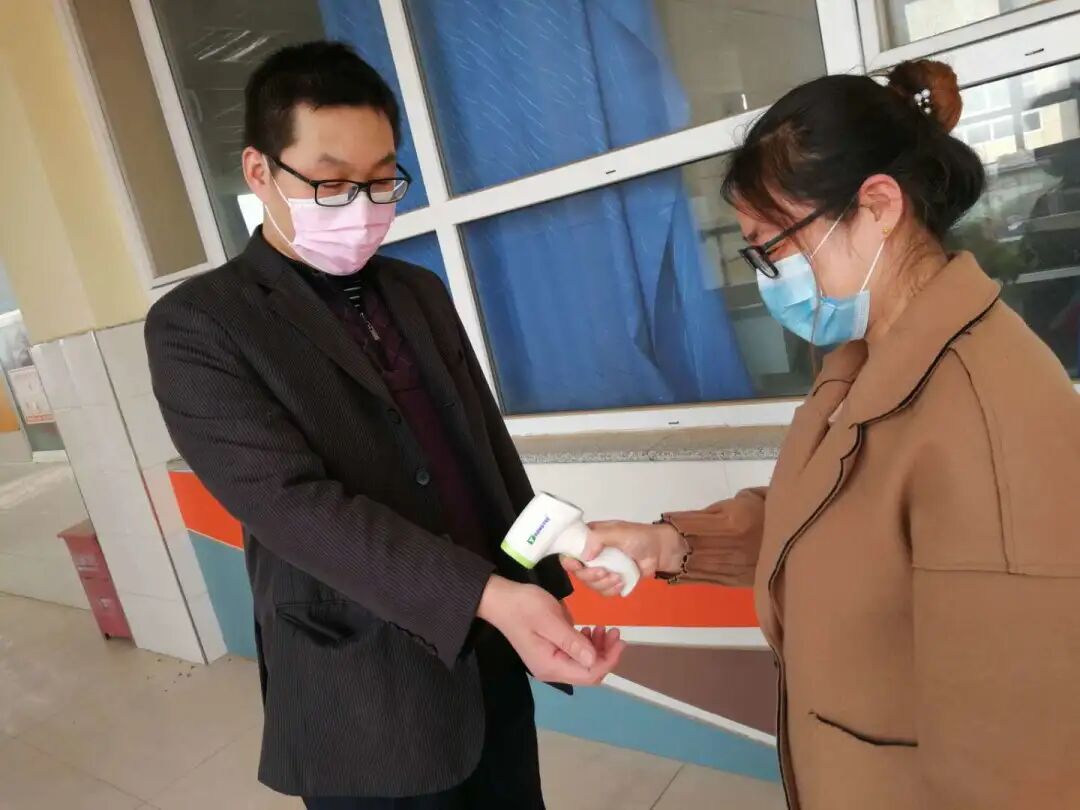 疫情期间,为保证各位老师的健康,由年级部人员对学科老师进行体温测量。