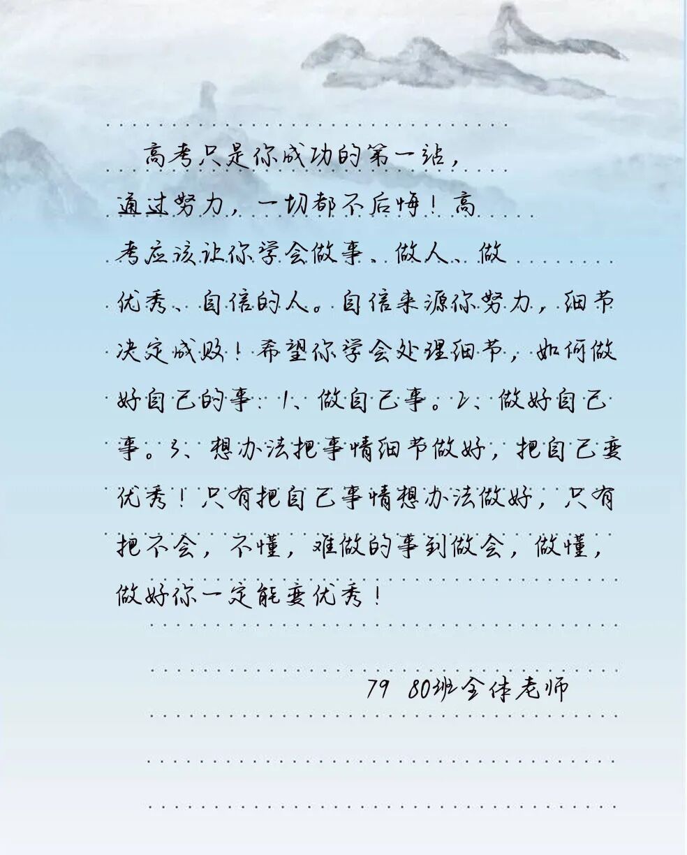 以上都是老师们的衷心希冀,愿所有的孩子在家中能自律,苦心志,劳筋骨,在六月高考中超常发挥,考上理想高校,在九月奔赴下一场山海!孩子们,加油!