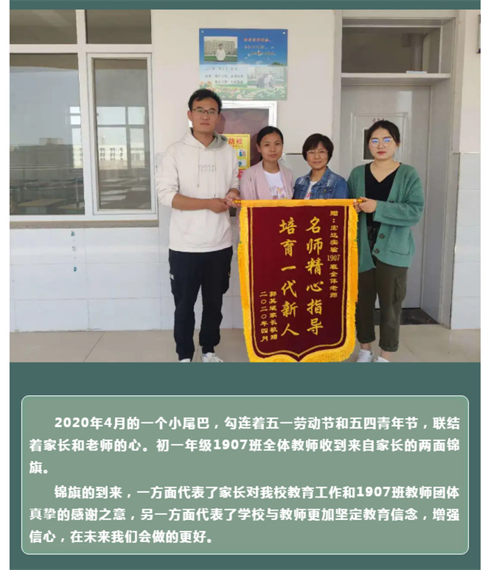 宏达实验学校:劳有所得——锦旗赠与1907班全体教师