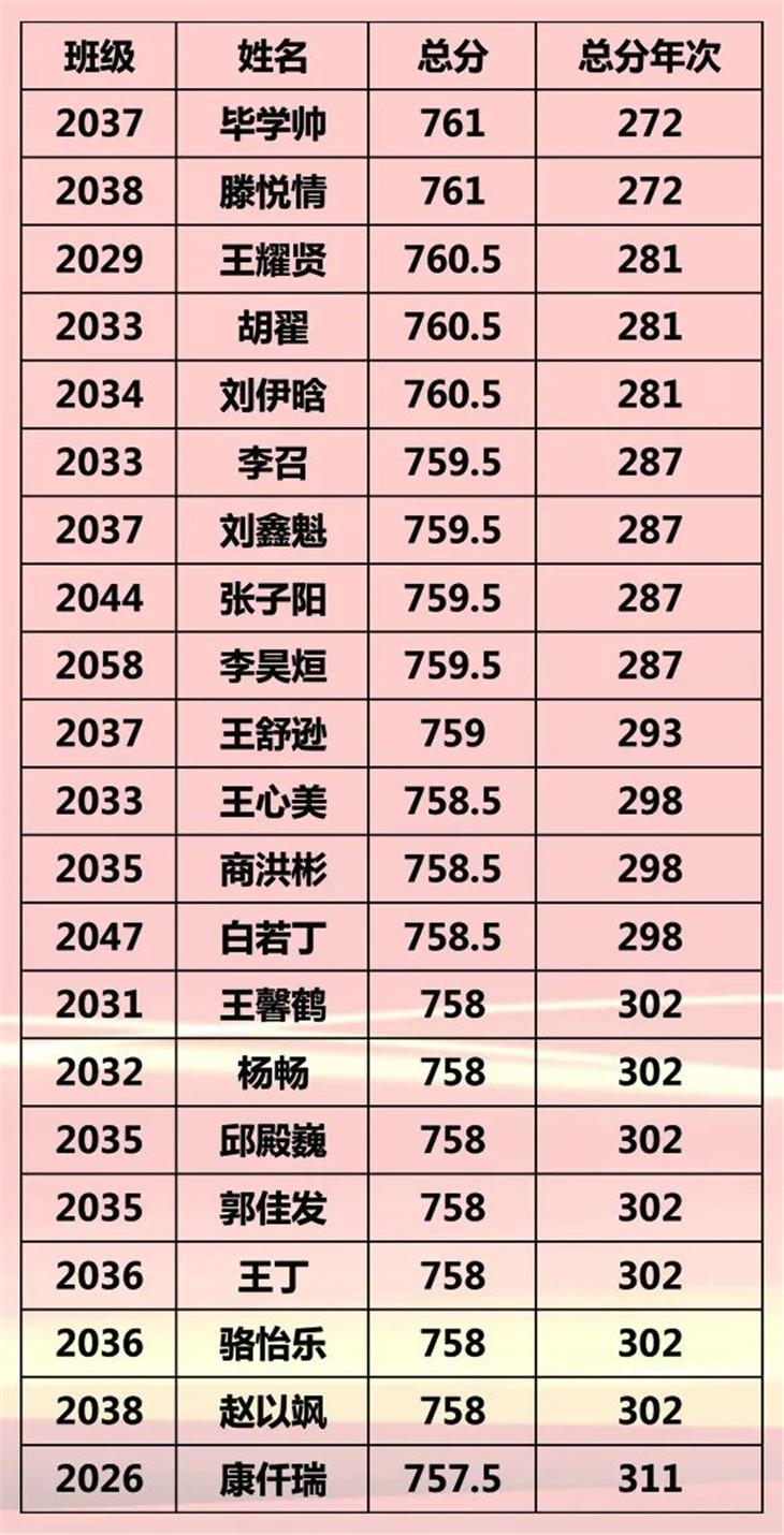 新鲜出炉!我校高一年级第一次月考光荣榜