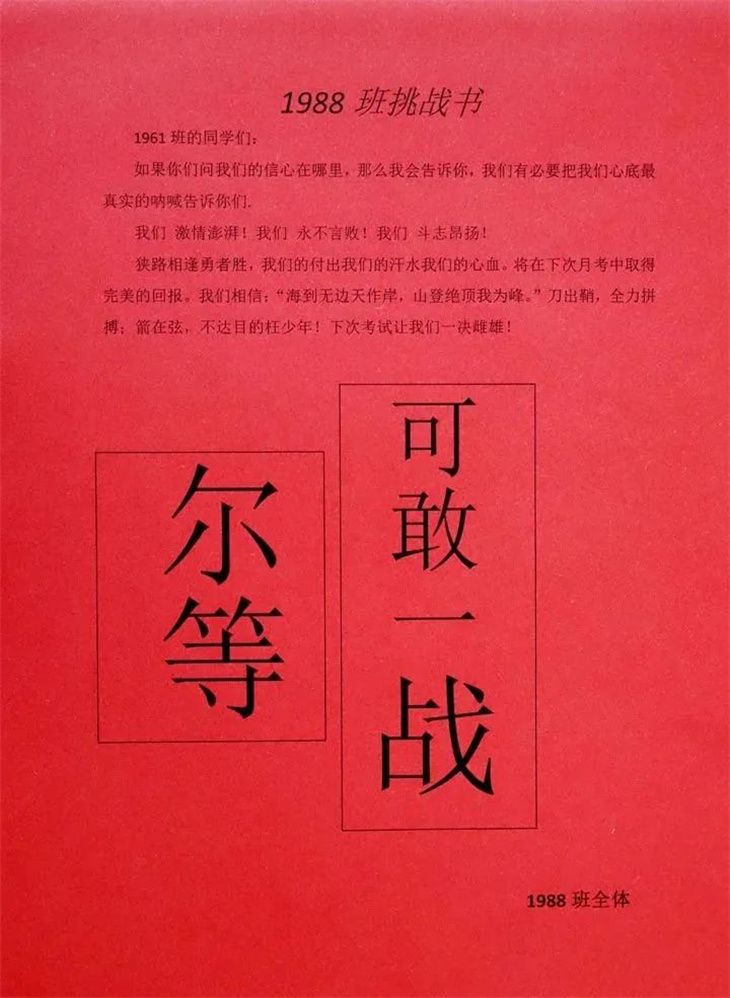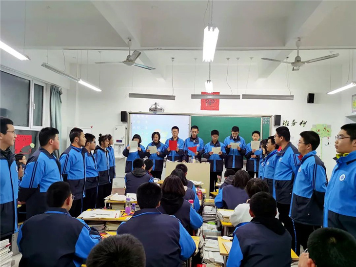 这一封封班级挑战书,书写的霸气冲天,斗志昂扬。同学们庄严的宣读战书,精神抖擞,声音洪亮,整齐划一,热血沸腾,彰显了自己饱满的精气神。