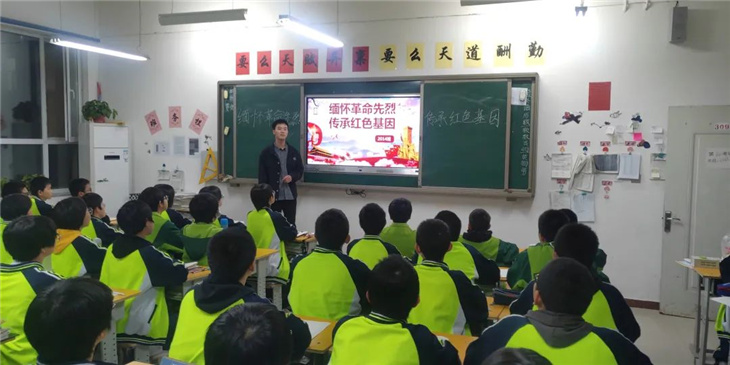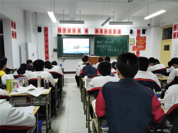 在这个特别的节日,学校组织师生共看革命先辈们浴血奋战的相关视频,了解革命先辈们的艰苦征程与光辉事迹,班主任为学生讲解清明节文化,让清明节文化深入学生内心,并教育学生在当下的和平年代要铭记历史,缅怀革命先辈,传承红色基因,为中国的富强而发奋读书。