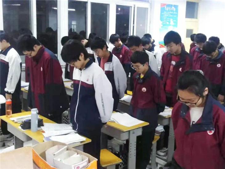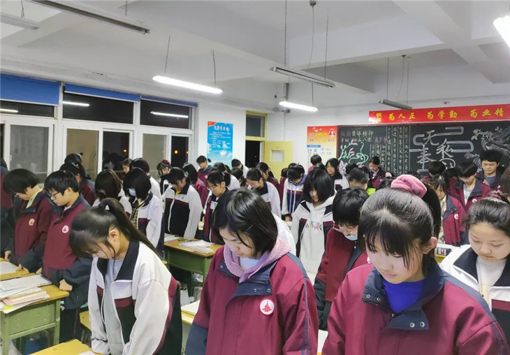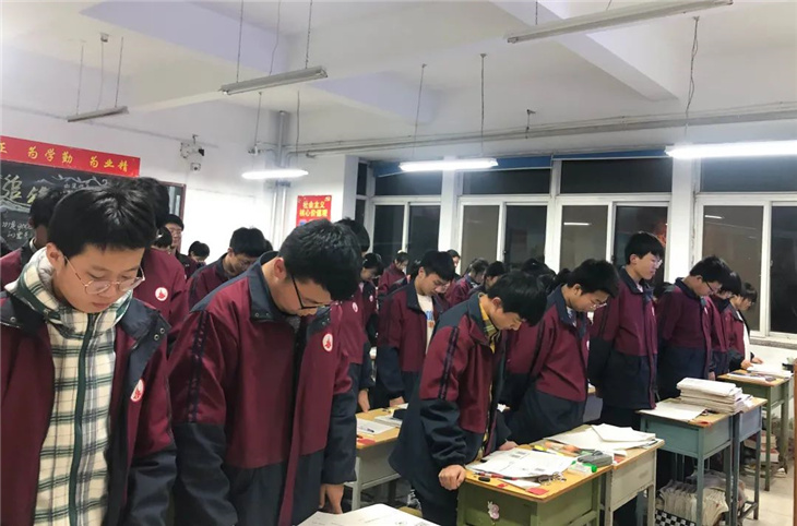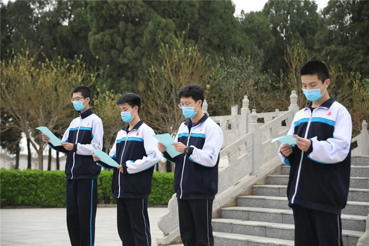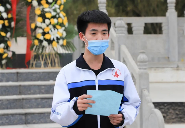 最后,全体学生向革命烈士,尤其是向在新冠疫情防控工作中牺牲的白衣战士和为保卫祖国边境牺牲的戍边战士默哀。