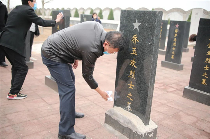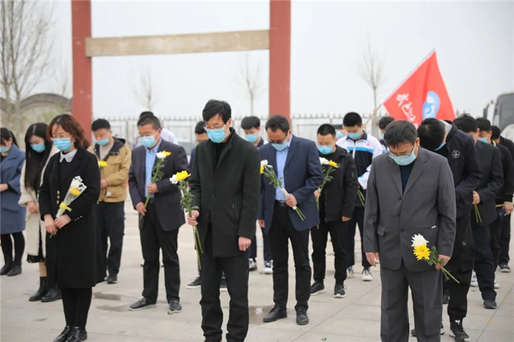 我校教师于4月2日前往武邑县烈士陵园,进行参观,为牺牲烈士敬献花篮,并举行瞻仰、致敬、默哀、听讲解、签字等活动。