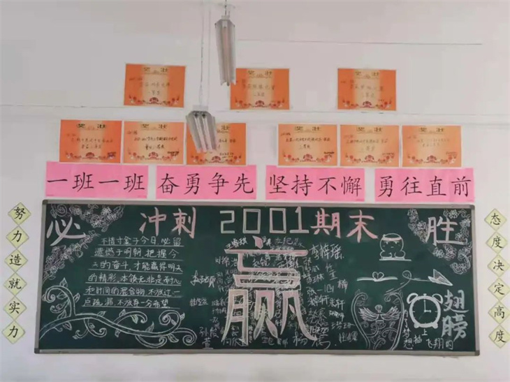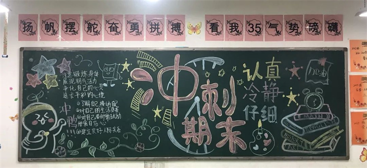 在这冲刺期末的重要阶段,我校举办了“全力以赴,冲刺期末”主题板报评比活动。用以激励学生,奋力冲刺、努力拼搏。
