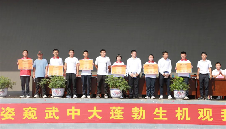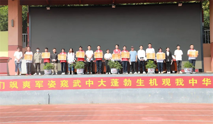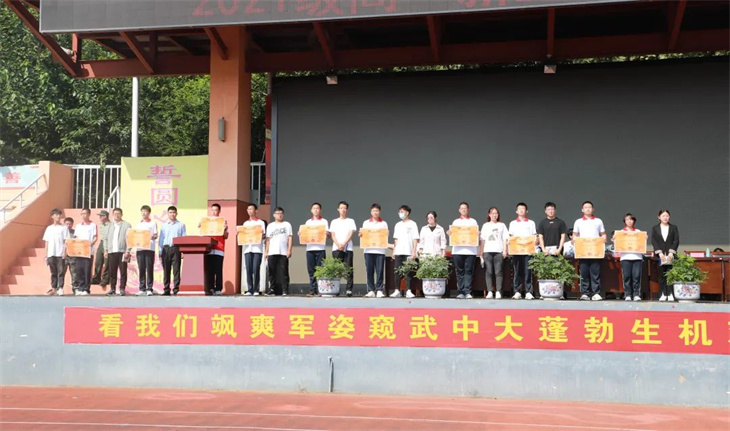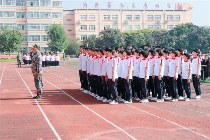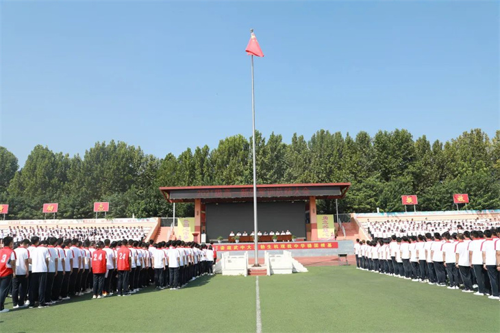 金秋九月,丹桂飘香。9月8日,武邑宏达学校高一年级新生军训总结大会在操场如期举行。县武装部军训科科长韩猛,我校副校长金耀辉,政教处主任张双柱、副主任魏红胜,高一主任孙涛、邱雪、申红娟、卢敏、马永达、徐亚男等领导出席总结大会,大会由孙涛主任主持。