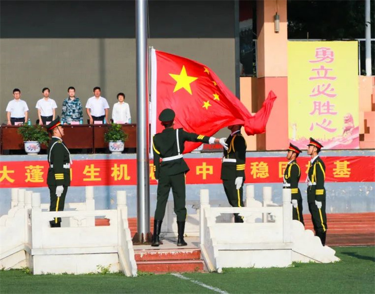 总结大会在庄严的升旗仪式中拉开帷幕,在雄壮的国歌声中,五星红旗缓缓升起,全体人员庄严肃立,面向国旗行注目礼。