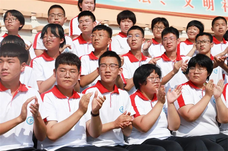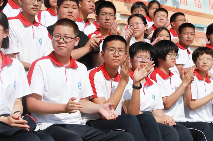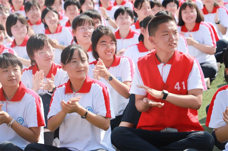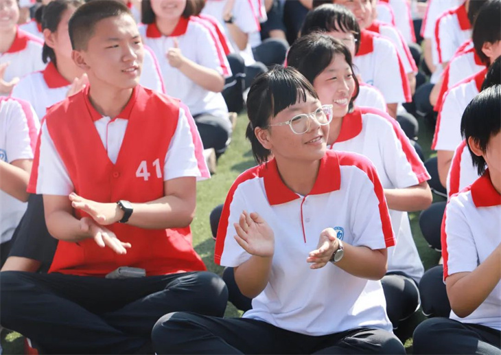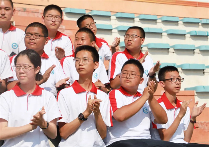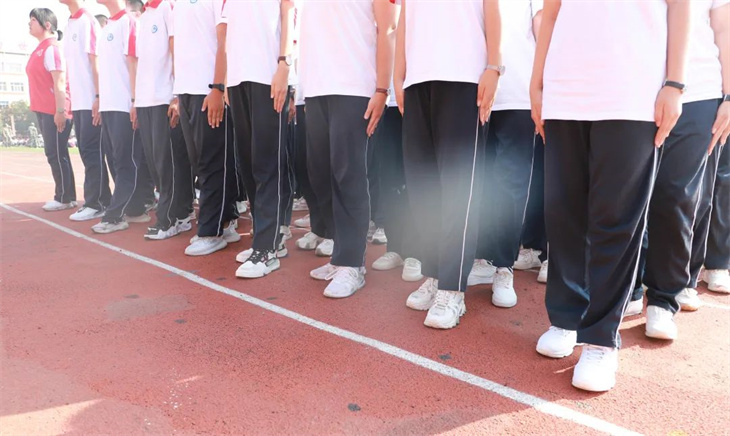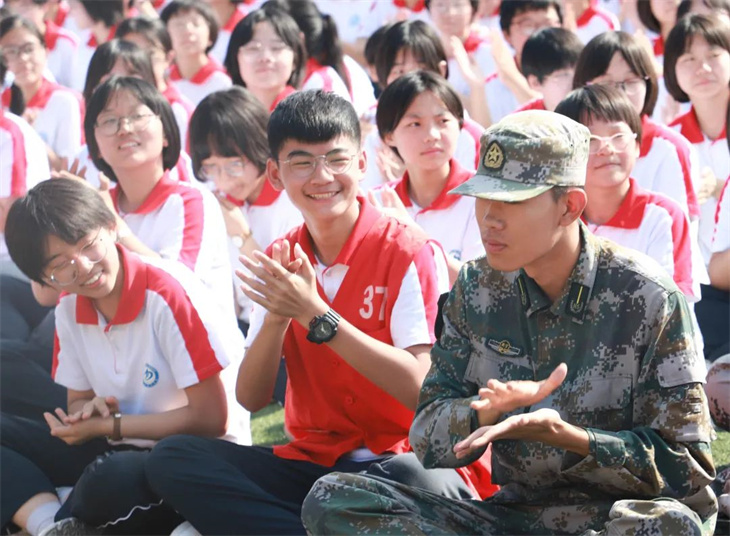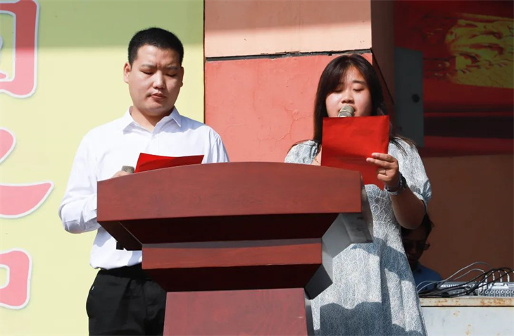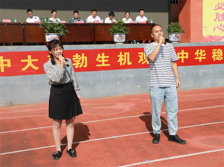 紧张的计分间隙,我校音乐教师乔鲲鹏和柴文静两位老师为大家带来歌曲,悠扬的校园民族风歌曲在校园里回荡,现场掌声阵阵。随后,我校教师鲁晓宇、张琪老师带来原创诗朗诵《九月的军训》,铿锵有力的诵读,表达了老师对学子们的祝福。