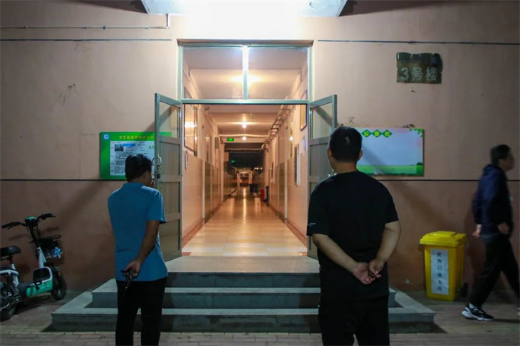 各楼道、路口疏散负责人于演练指令发出前抵达指定地点。随着警笛声响起,学生,弯着腰小步快走,沿着预定的疏散路线,快速、有序地撤离至安全地带。