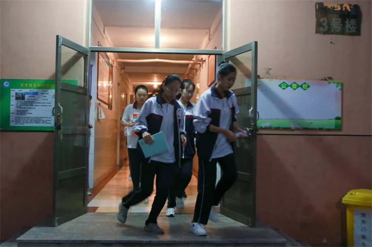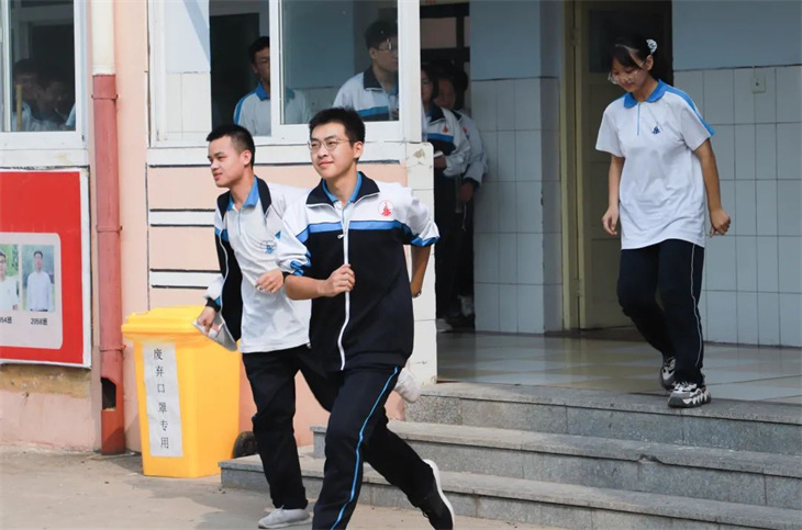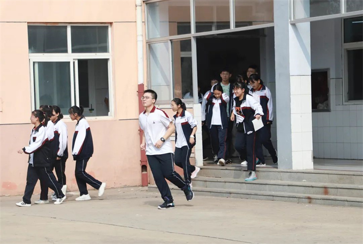 随后,各班班主任迅速整理队伍,清点学生人数。整个疏散过程配合默契,疏散路线清楚,组织有条不紊,人人各尽其责。