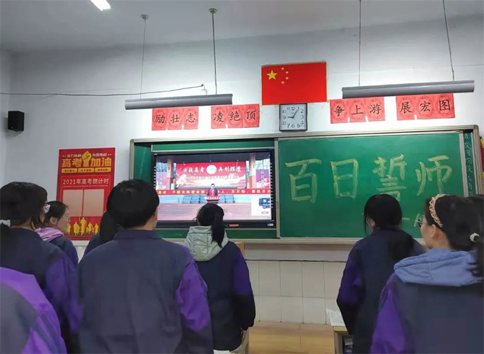 高三各科老师们以视频形式为同学们摇旗呐喊。备课组精心策划编排、富有学科特色的祝福,引发同学们的阵阵欢呼呐喊。接下来的一百天,每一位老师将忠于职守,甘于奉献,与同学们风雨同舟,静待梦想绽放,期待桃李芳香。
